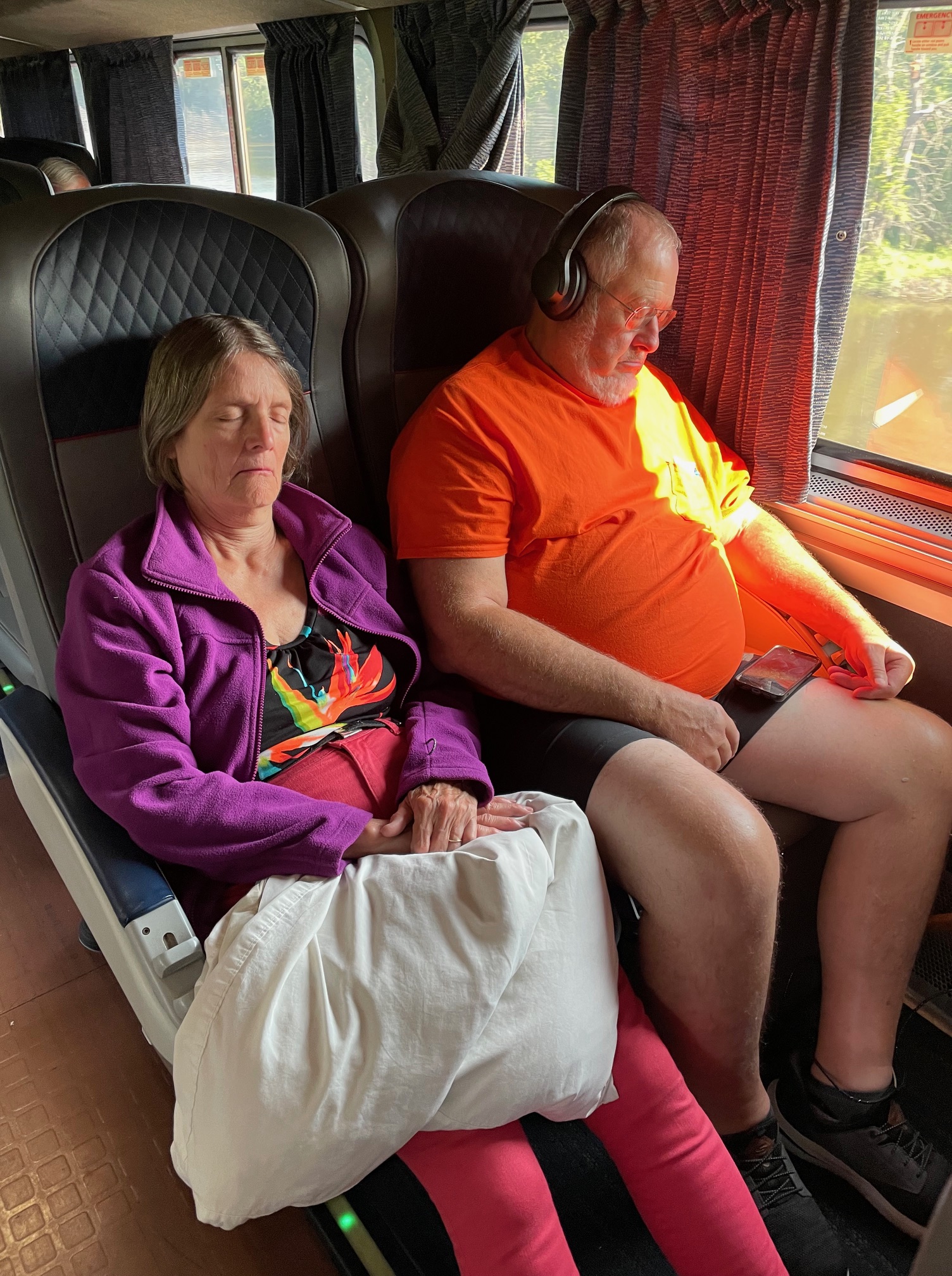 But I heard my husband mumble “never again” after the 30-hour train trip that turned into 37 hours. We both tried to sleep in our seats (which were roomy and fairly new), but still it was hard sleeping sitting up, or laying heads on each other.