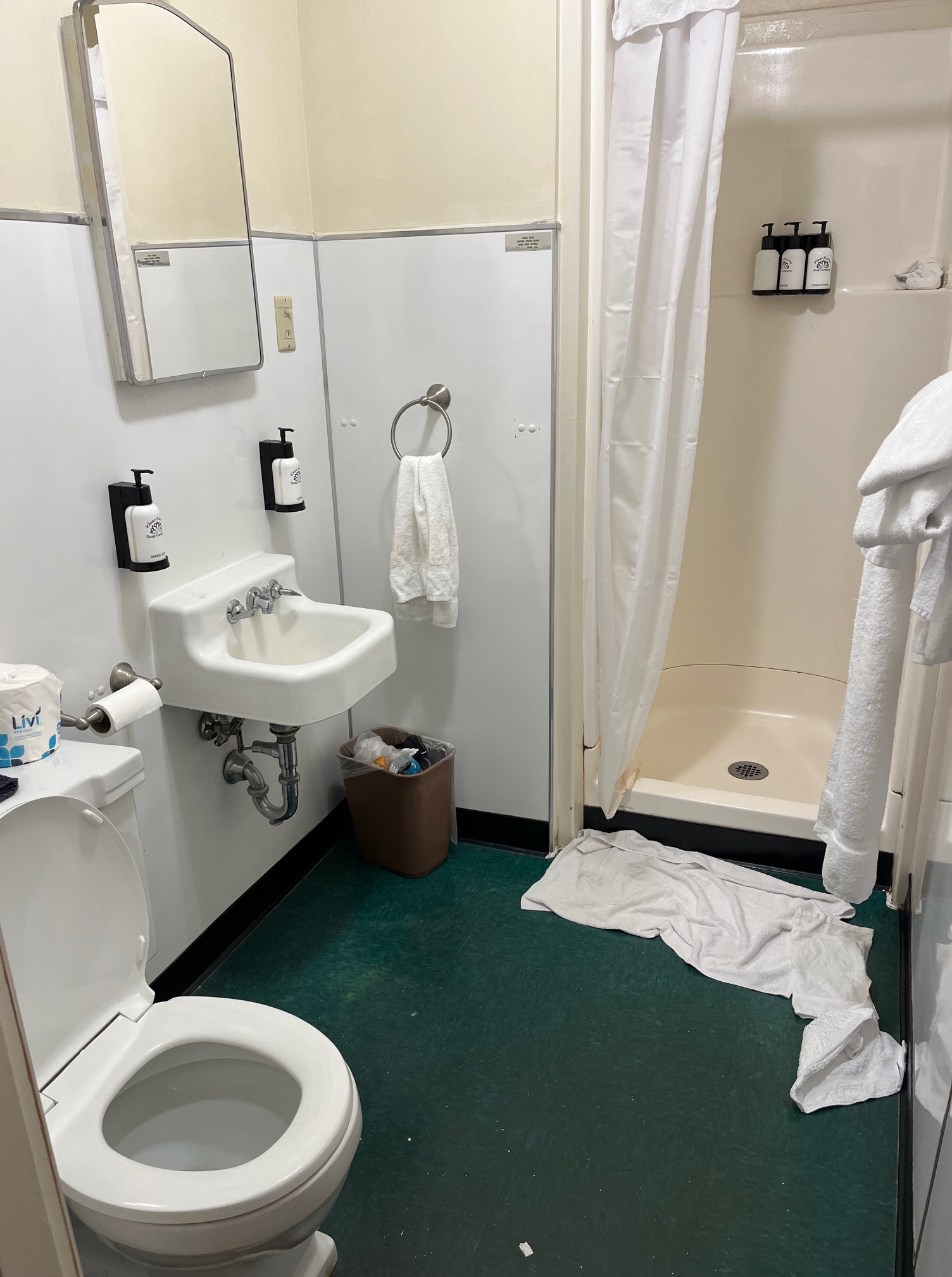 The bedrooms in the huge and ancient Lodge (circa 1913) were large enough—except for the bathrooms, where I had to hold the shower curtain for my husband to keep it and the water from billowing out. The sink was as tiny as the toy sink we have in our kids’ and grandkids’ playhouse.
