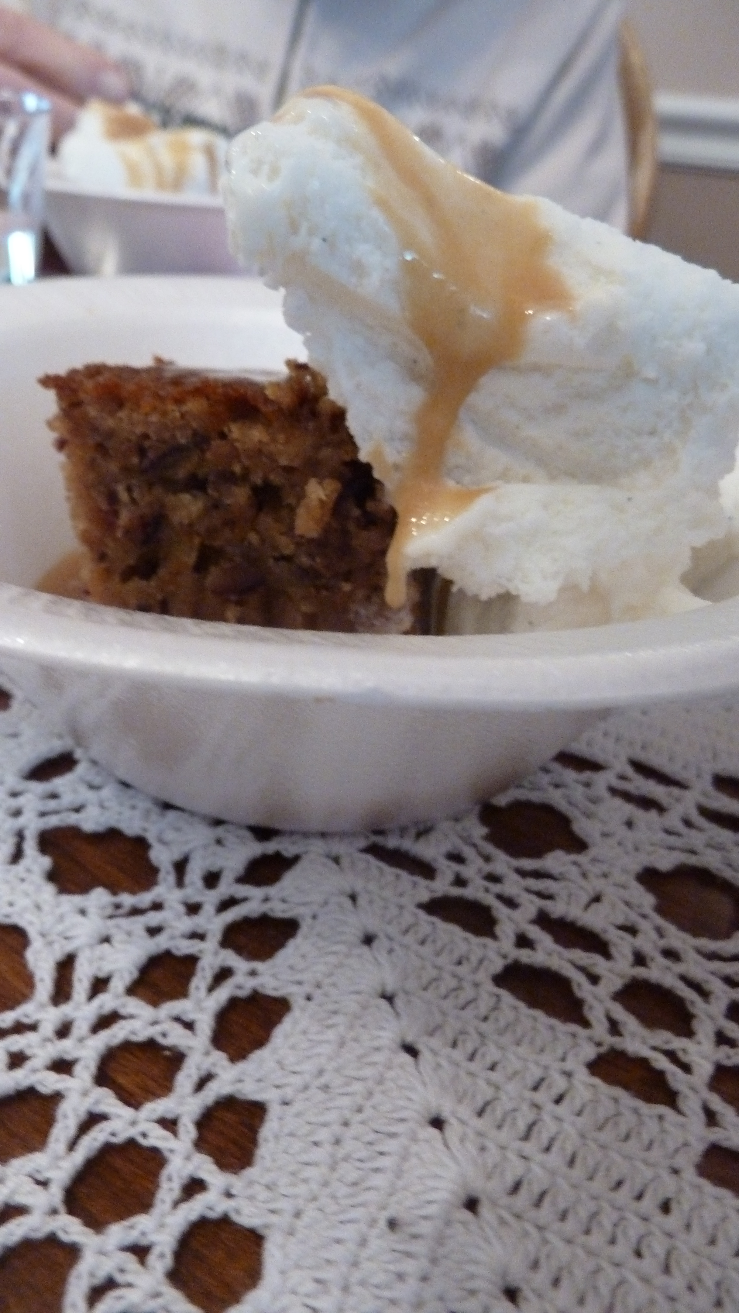 This time Sue has brought “Sticky Date Pudding” with Toffee Sauce and Ice Cream, a dessert she loved on a trip to Prince Edward Island. It wins wave reviews. (Dalvay By the Sea shares the recipe online!)