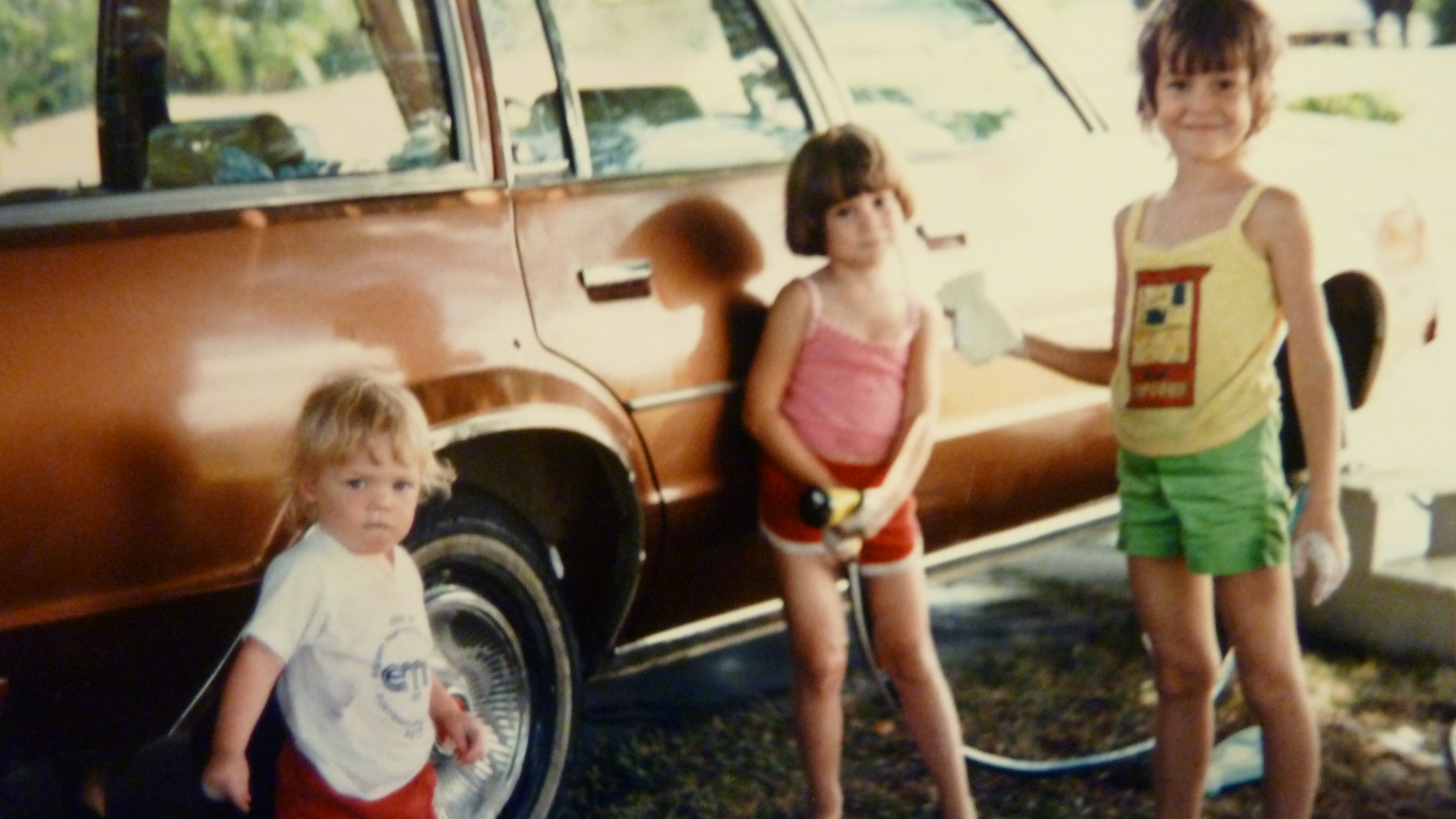 Our daughters dutifully washing the wagon before the trip with Grandpa and Grandma.