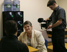 Photo by Wayne Gehman for Mennonite Media, from the production of Shadow Voices: Finding Hope in Mental Illness. Pictured are Lyn Legere and Denver Steiner, listening to a young man in a peer-to-peer listening session. Lyn’s story is told in Shadow Voices and her struggles with cigarette addiction finally made it into a radio spot you can find here.