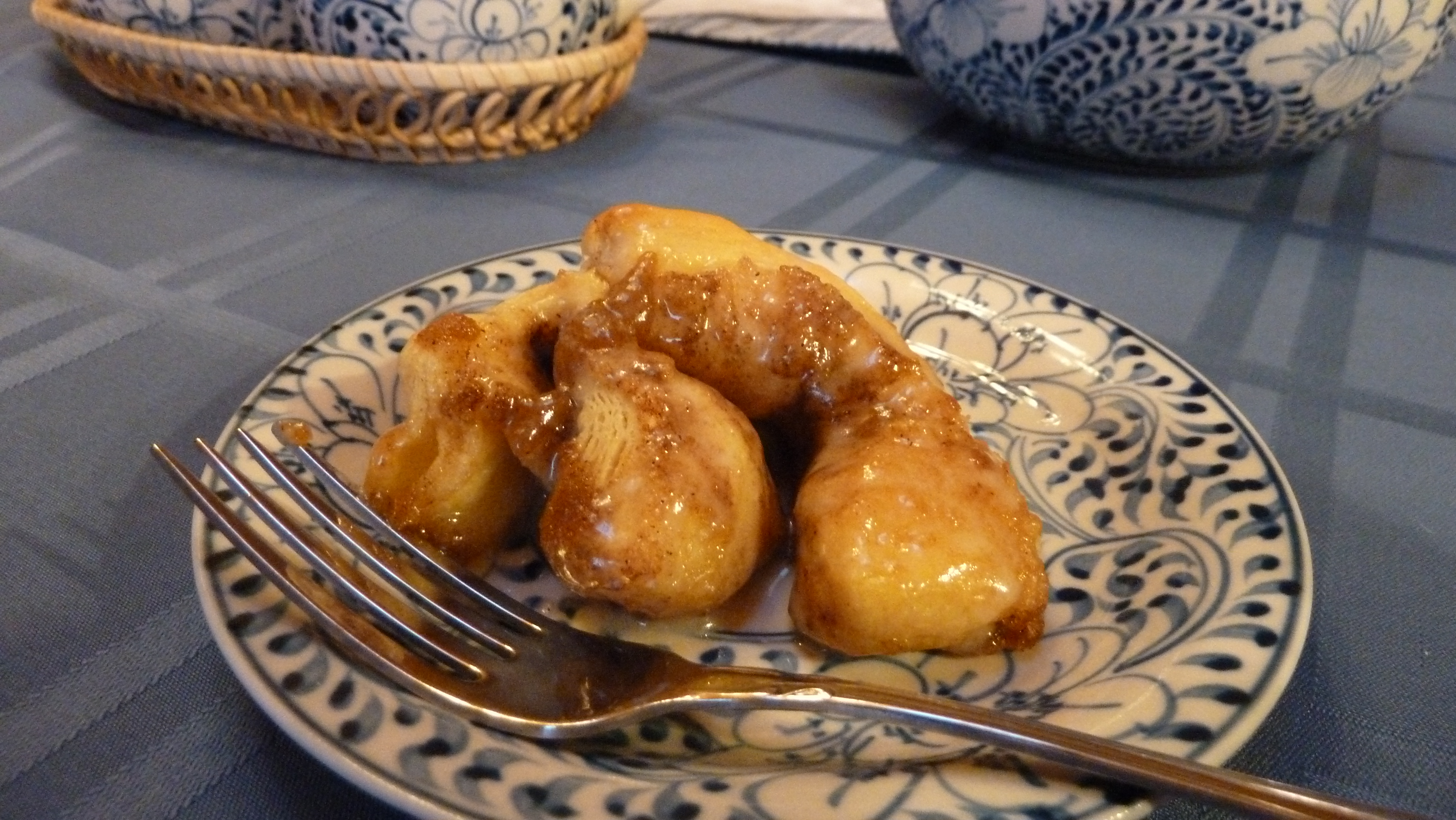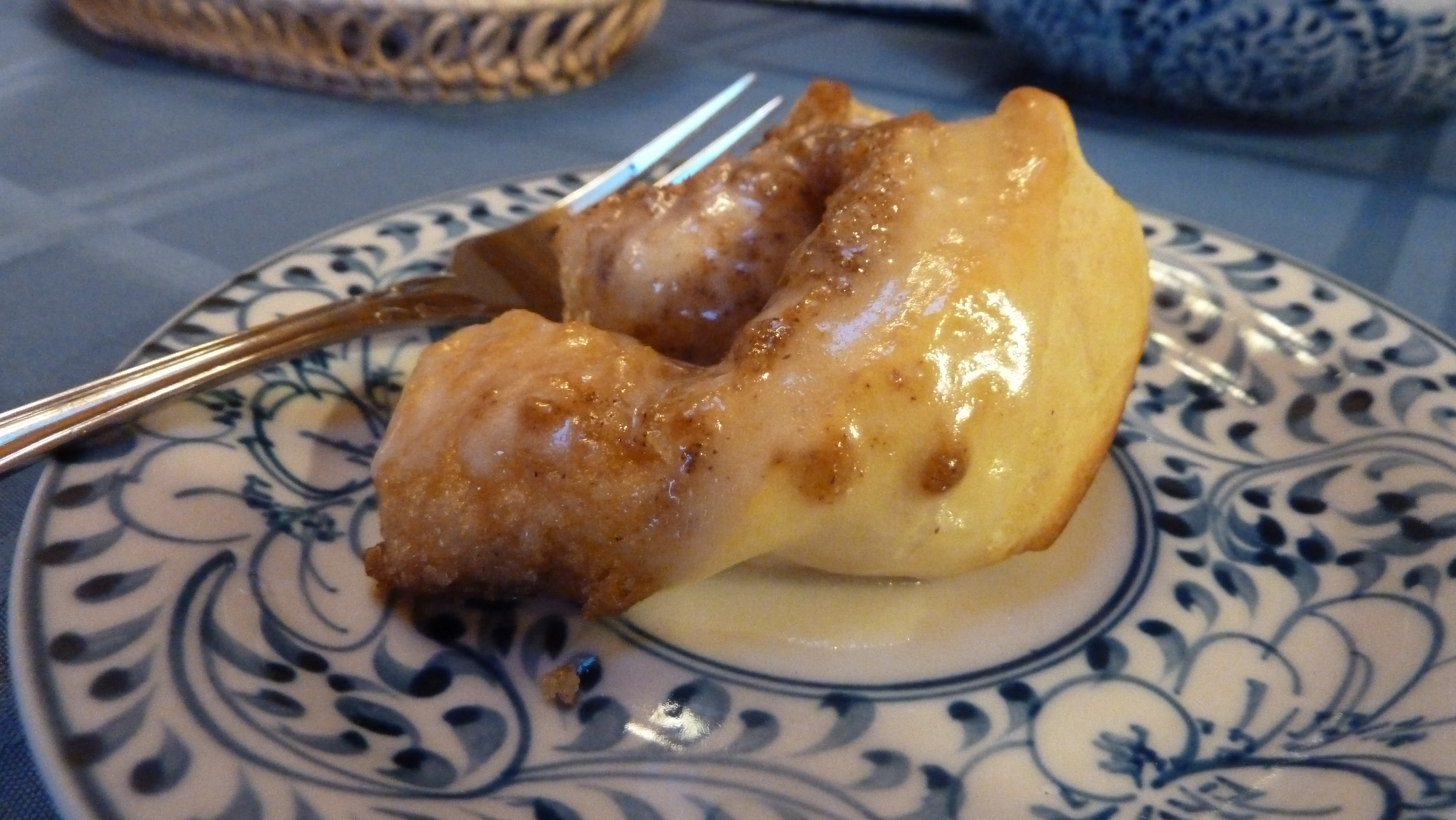 For instance, I’m not sure when I started it, but it may very well have been for Easter that I concocted quickie sweet rolls (below) by using a can of prepared plain refrigerator biscuits. Some people stick up their nose at using this kind of convenience food, but this has become something my children (and now two sons-in-law), look forward to at our house.