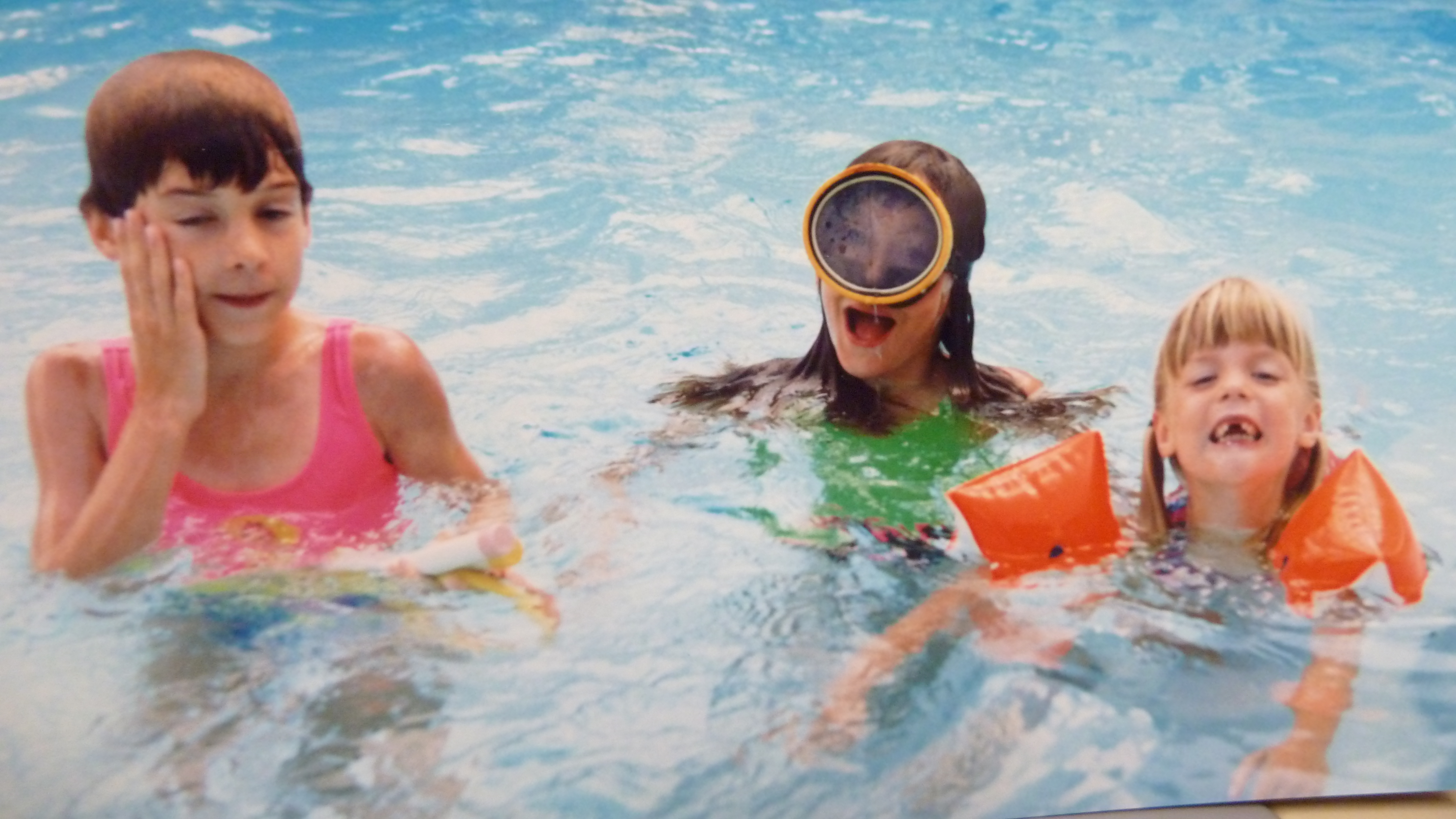 A few years after this photo, when the oldest had grown too tall to actually get into the pit (she was probably barely getting by in this picture), the youngest one was getting bullied by another kid in the pit—lightly pummeled with balls, that kind of thing. We were inside the restaurant and didn’t really see what was going on. But Michelle was standing by and did see. She sauntered over, unfolding her long lean body straight and tall, probably all five feet of her young self. The bully boy stammered upon seeing Big Sister standing by: “uh … er … I didn’t know you had a sister THAT big!” And that was the end of that small annoyance.