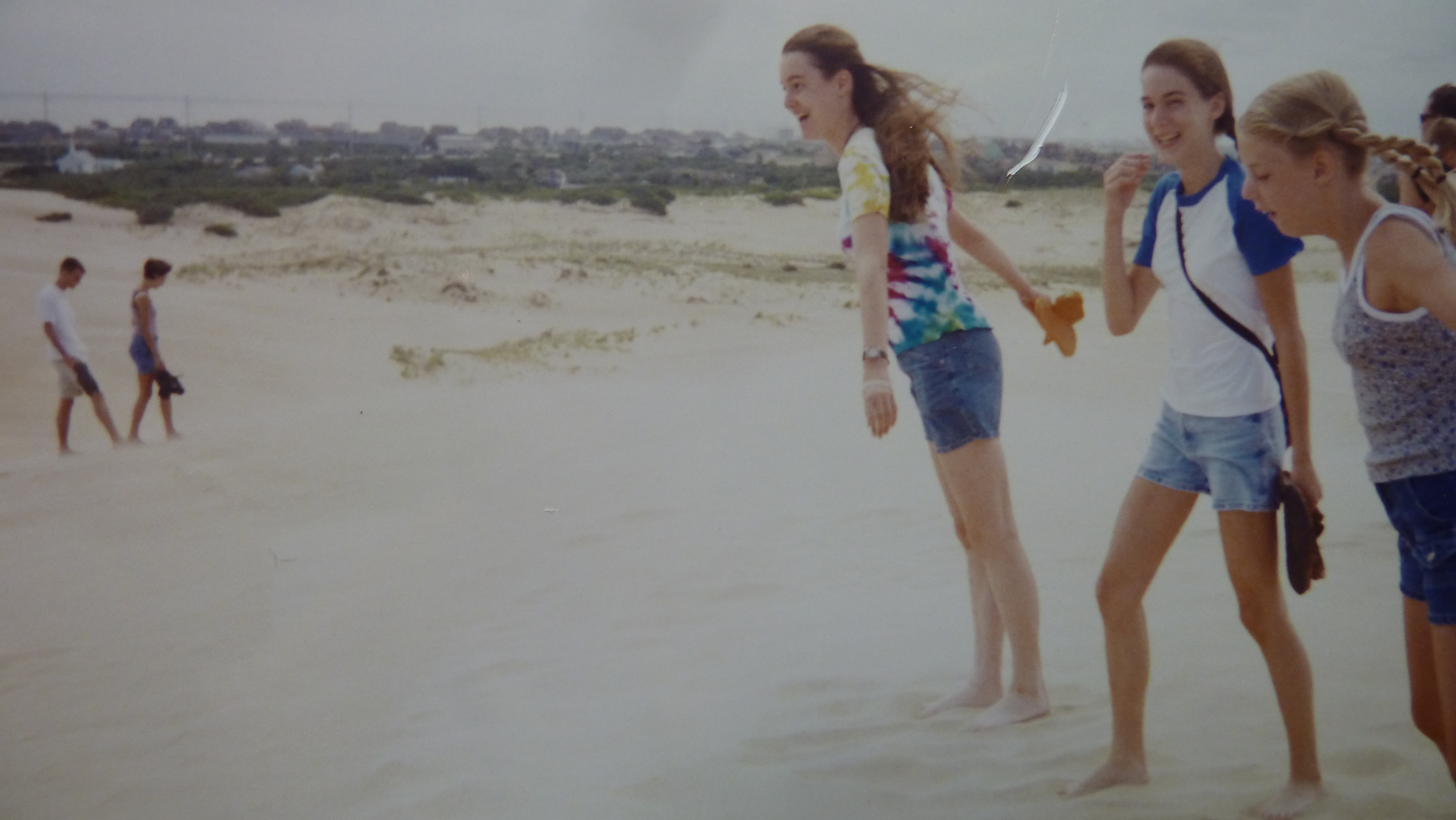 Of course they had their fights, their jealousies, their annoyances. All three rode the same bus, #51, only one year to their elementary school. Bottom: Leaning in to hurricane force gales near Kitty Hawk, NC.
