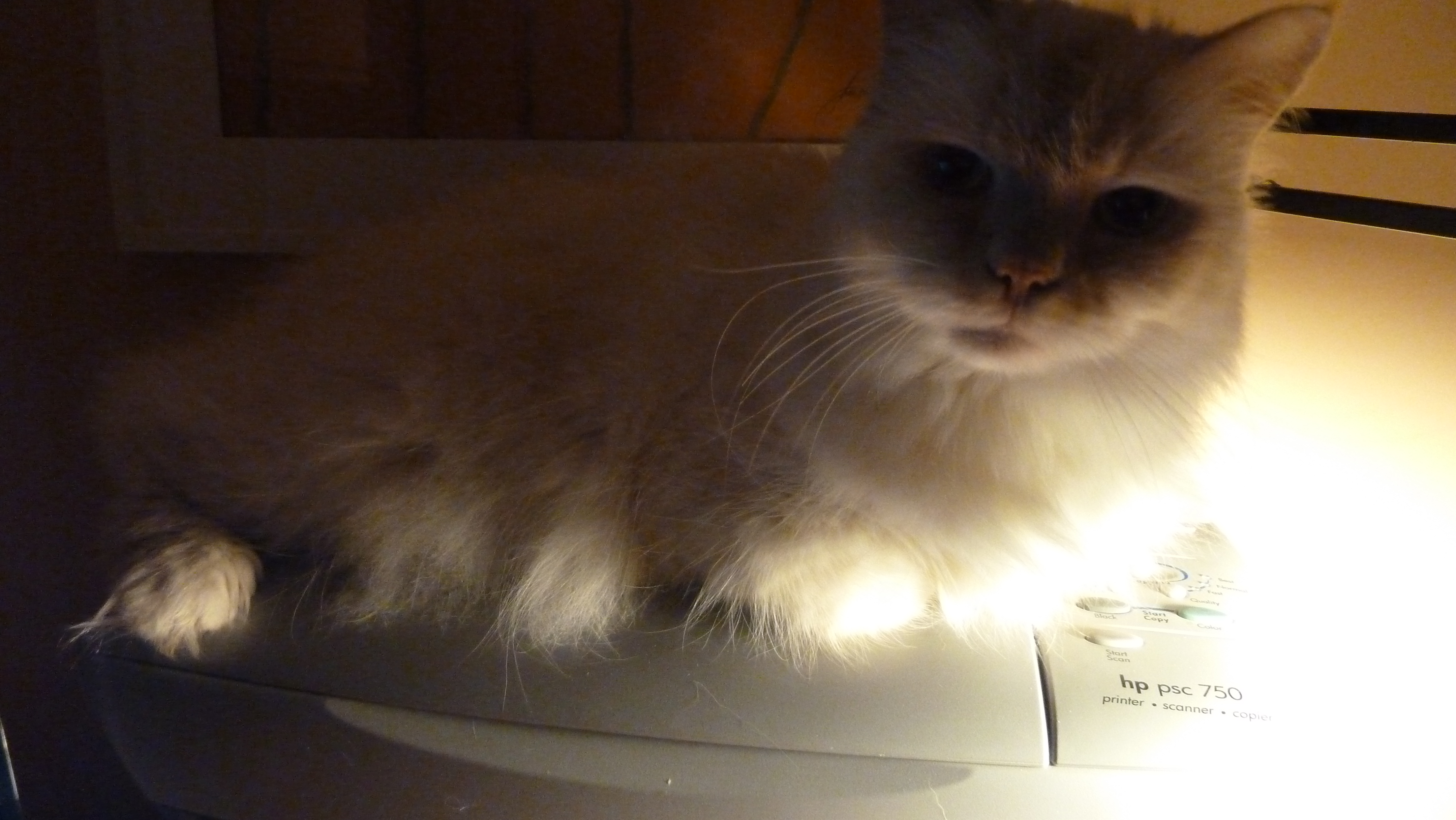 And my husband and I still have cats as you can see by my collection of cat photos. In fact, the “editor on my shoulder” is my boy Riley (all white Himalayan), who loves to watch me compose blogs and respond to manuscripts sitting on top of the printer in my home office.
