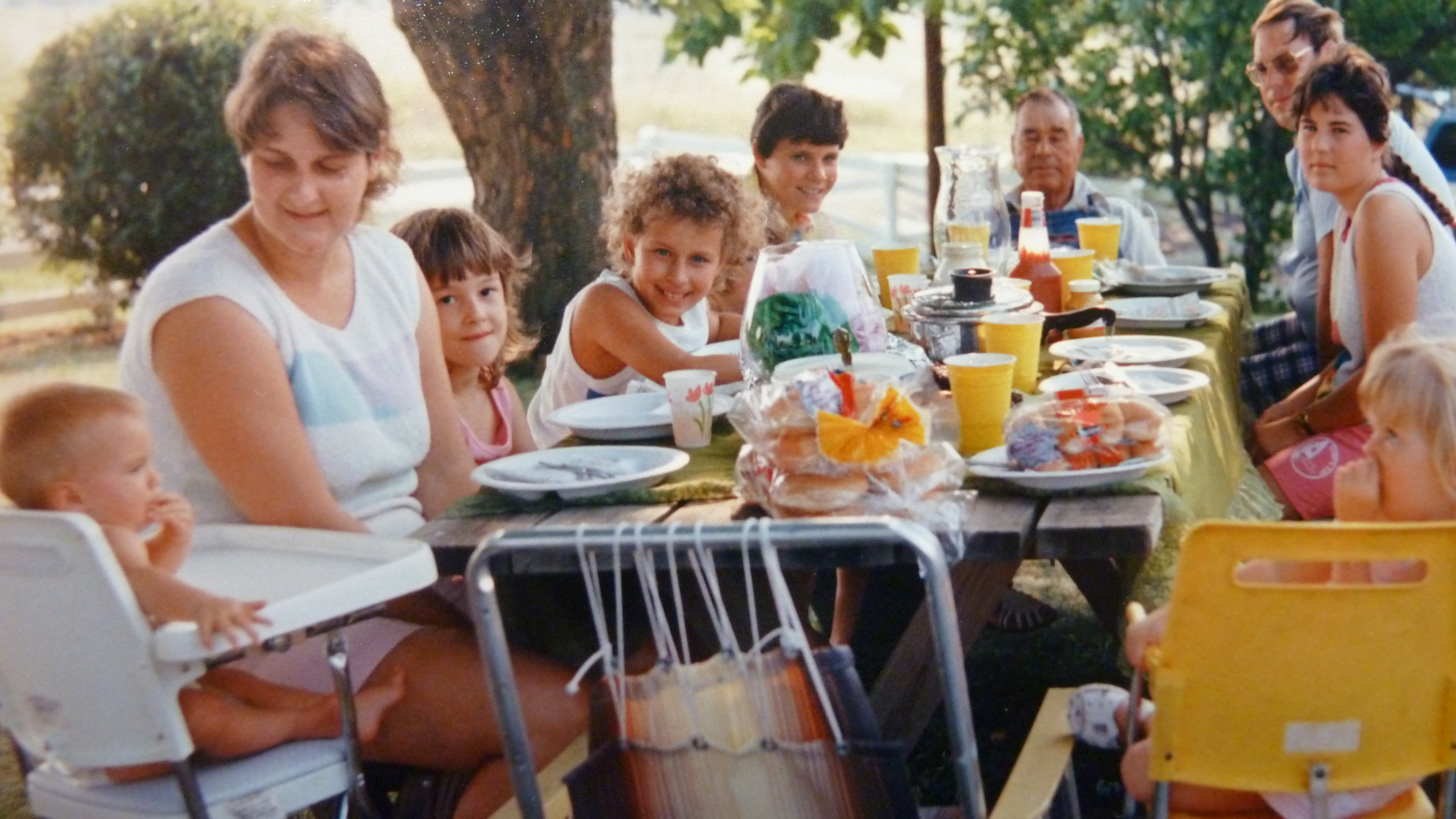 My father-in-law, Hershal, at the far end of this picnic table, circa 1987.