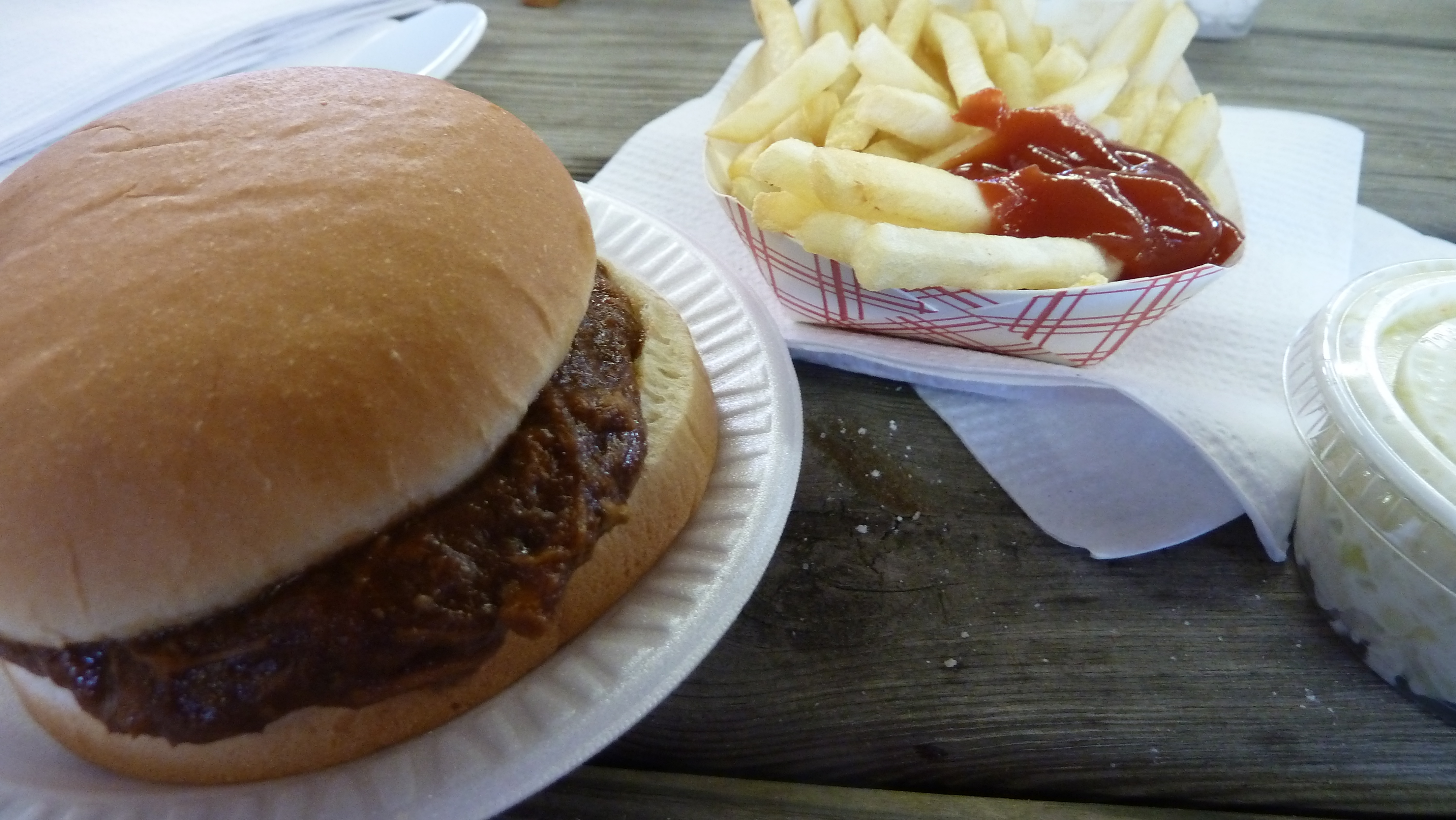 Then our company, in a move to encourage fitness, offered to pay so much towards gym memberships. That was the other nudge I needed, and when I found a gym offering free exercise classes along with the membership, I decided to enroll last May and tried to get to the gym two to three times a week to classes or work out until garden work began in earnest. (When I’m busy gardening, I feel it serves as my gym.) I also began counting and limiting calories to 1500-1800 a day (not always successful.). It was toughest on weekends, when my husband enjoys going to our local lawn parties almost every weekend through the summer. (I’ll write about those fundraisers for rescue squads and fire departments sometime.) This is what the food looks like. Every weekend.