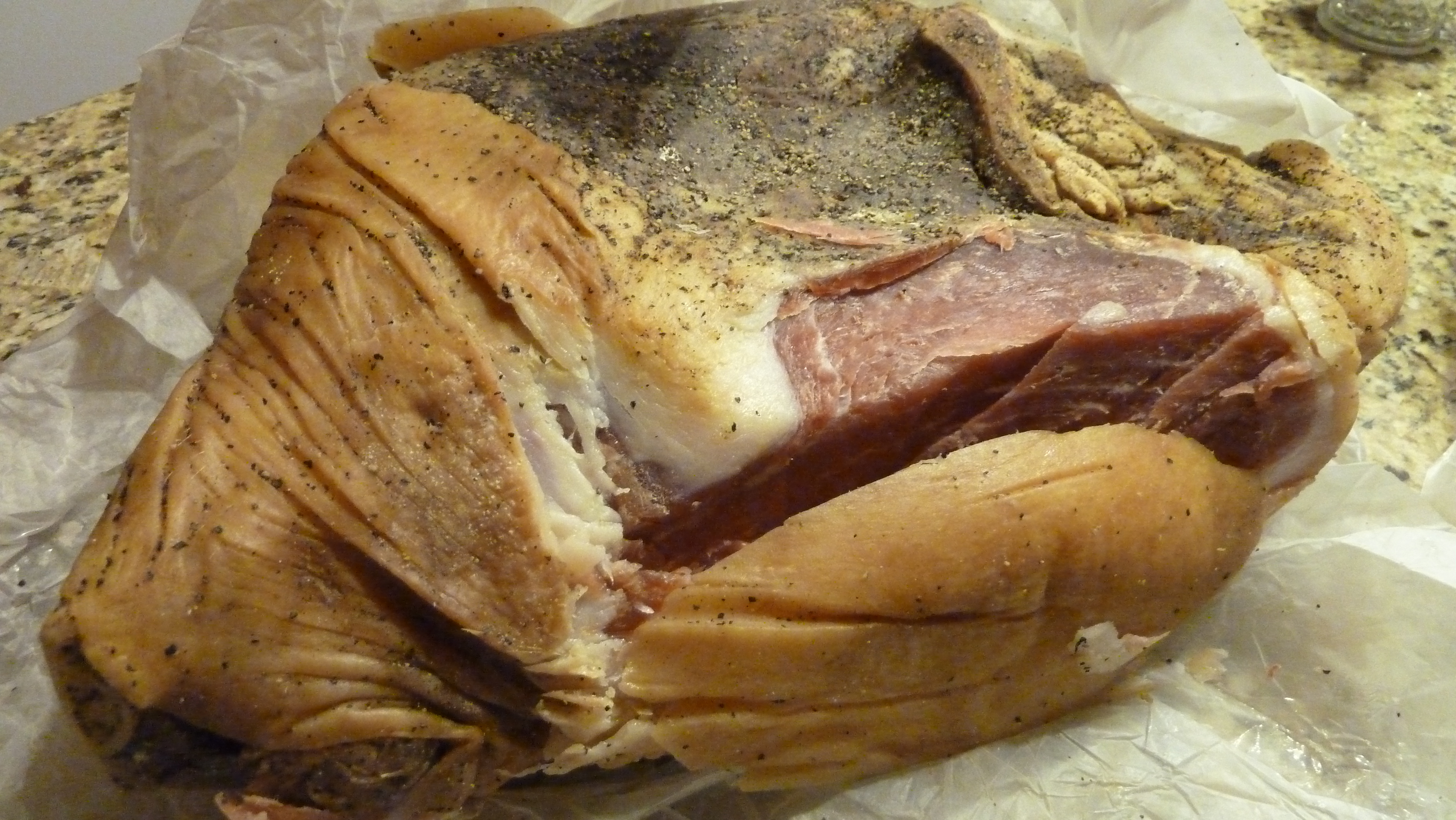 It wasn’t until I stepped on a scales with a whole country ham in my arms did it hit me what 15 pounds amassed together felt like. Warning: this may be graphic if you are not a meat eater.
