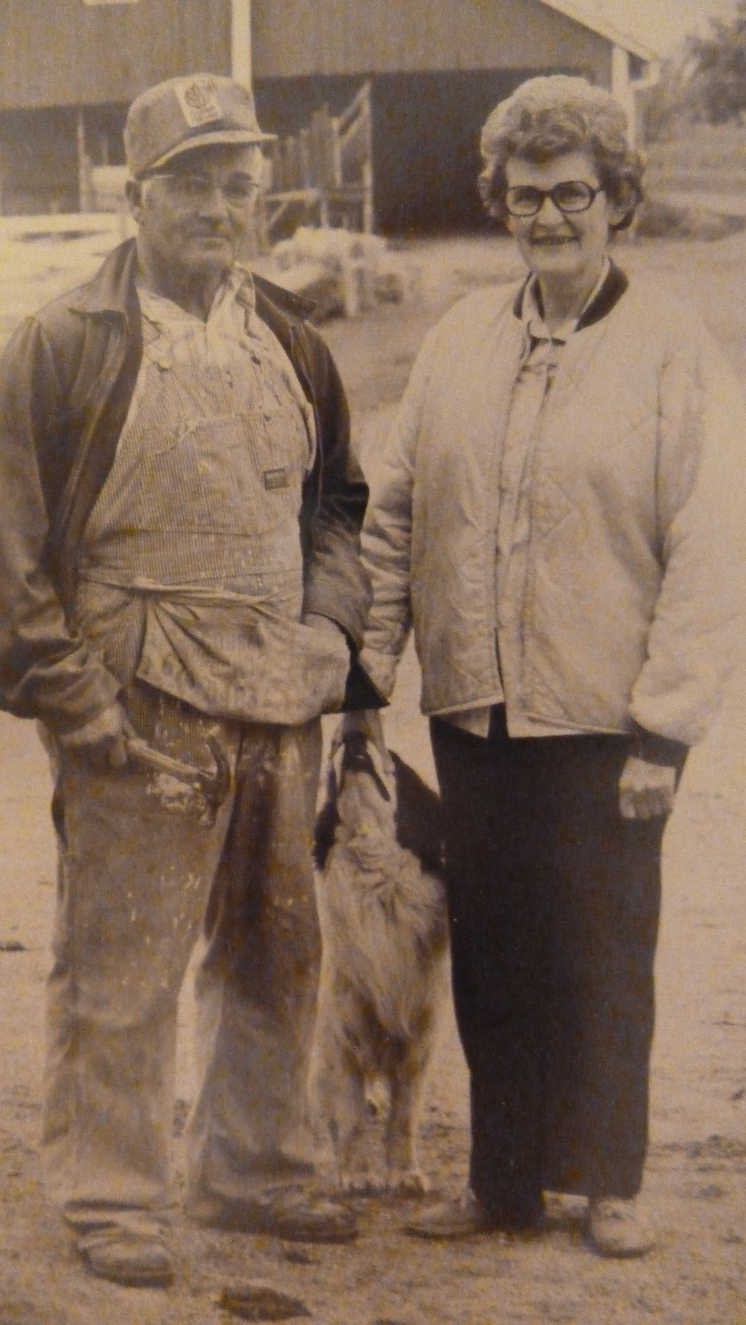 Dad and Mom on the farm with faithful dog, Buster. Photo by (then) Mennonite Board of Missions for Sent magazine on Mom and Dad serving in the SOOP program in South Texas in the 80s.
