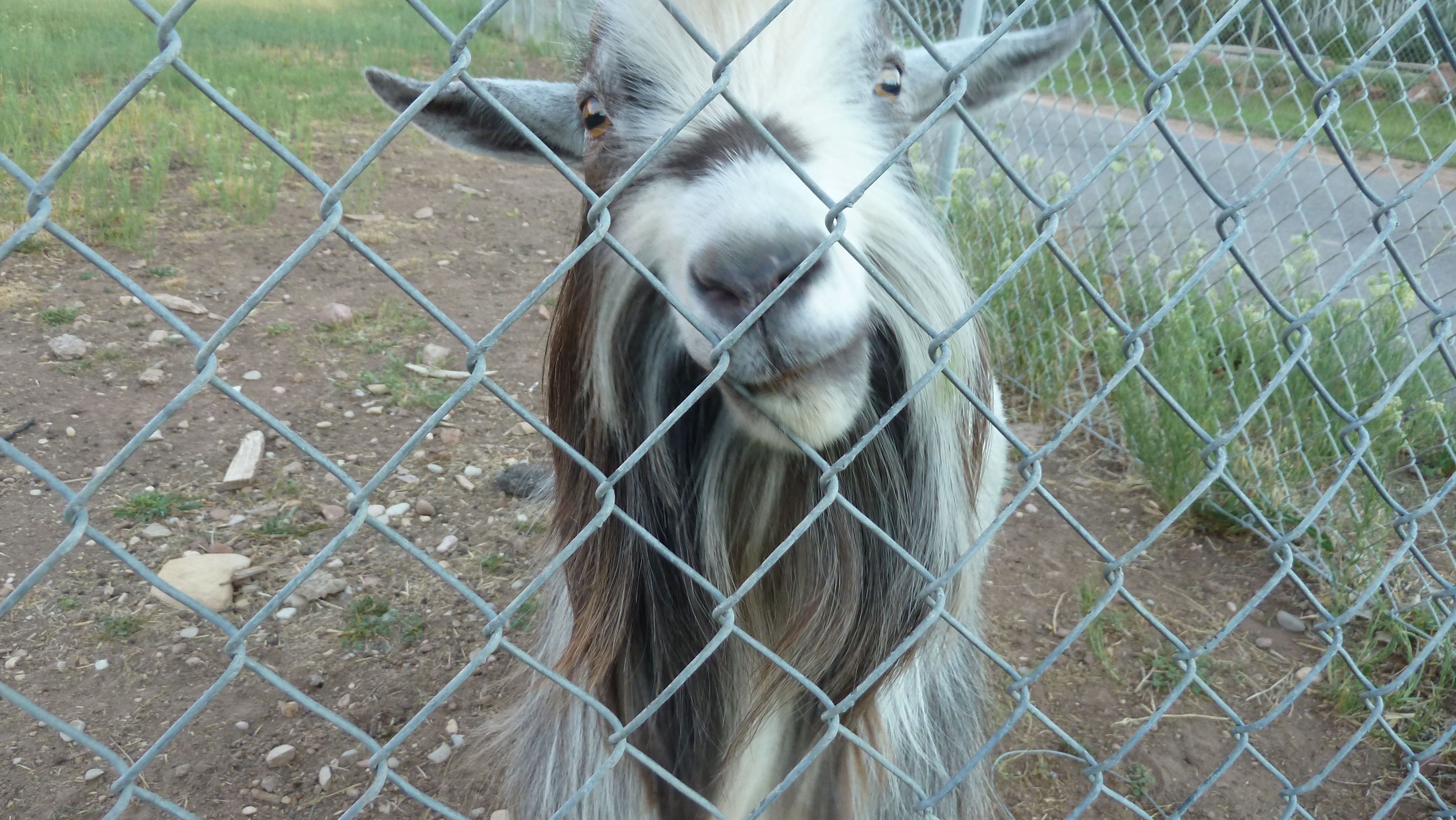 View from our motel, Bumbleberry, in the nearby town of Springdale. I was delighted to find goats and chickens inviting me to talk to them. Mr. Squirrel was enjoying the remains of a peach in Zion Park.