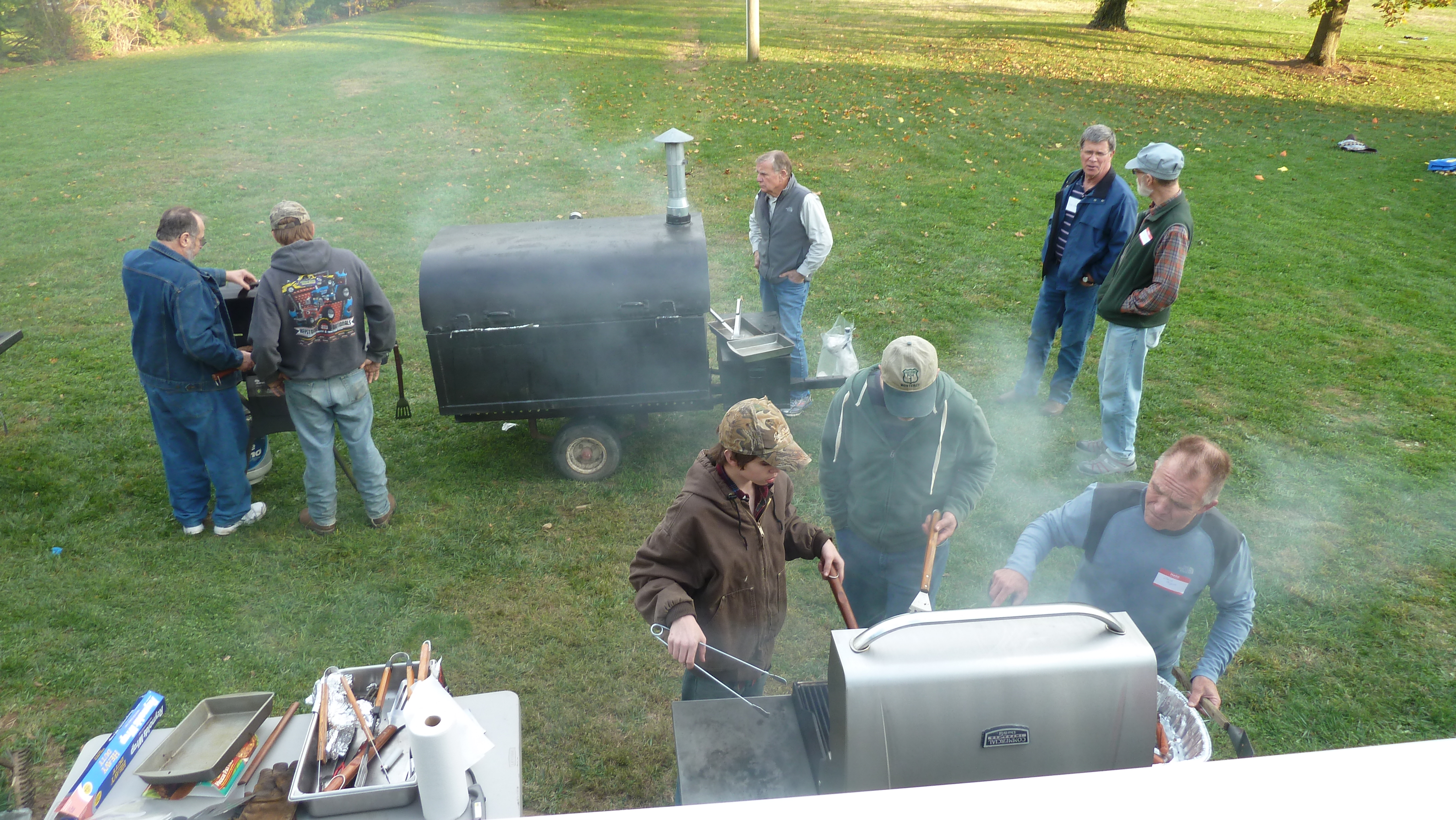 How many Presbyterian men does it take to grill a few hamburgers, veggie burgers and hot dogs these days?