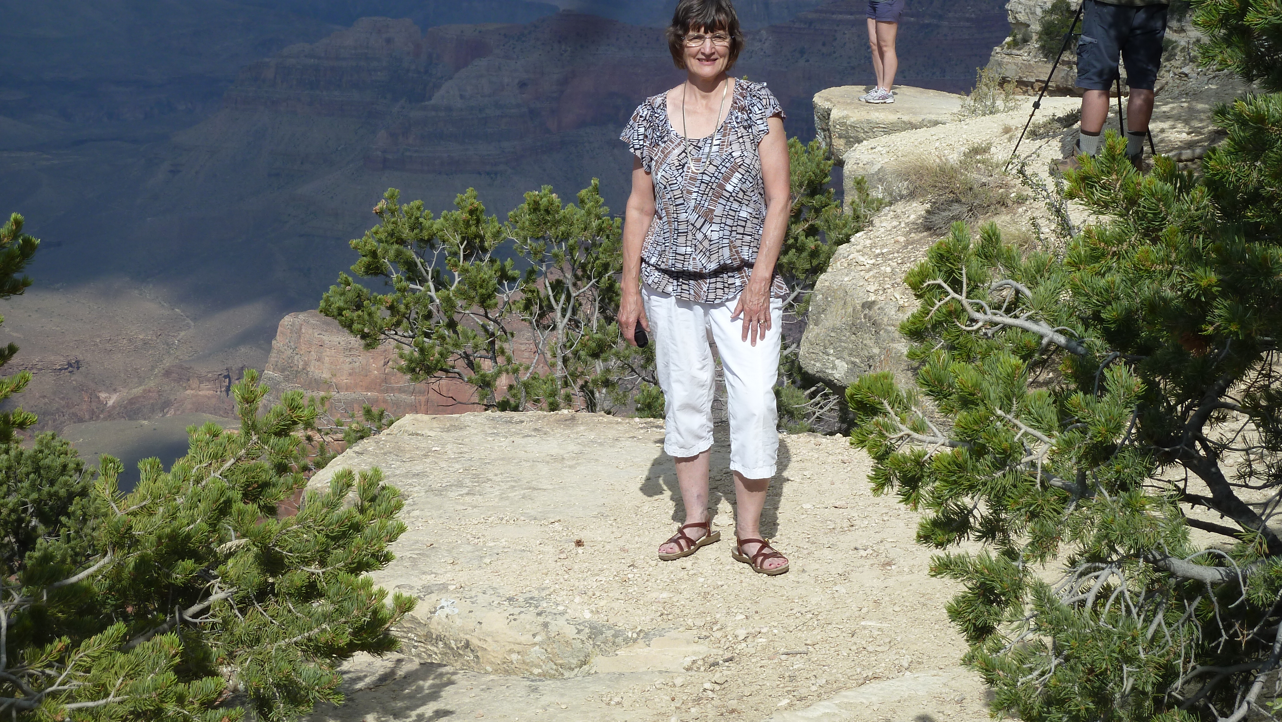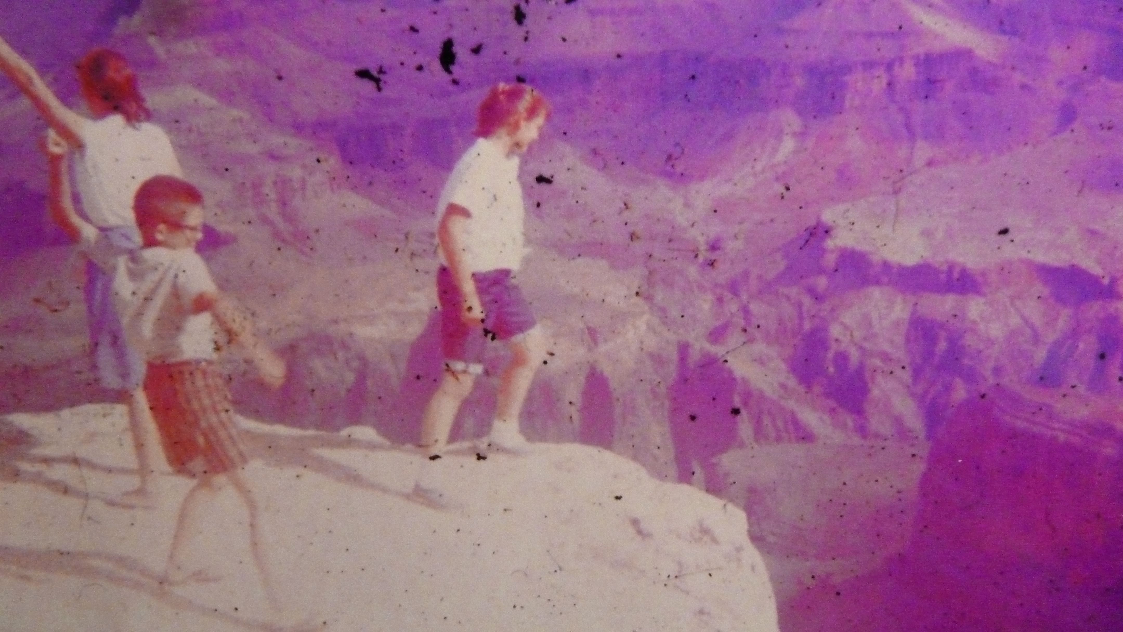 Top: One of the photos ruined in the camera meltdown: throwing rocks into Grand Canyon. I’m on far left. Bottom me at overlook at GrandCanyon, 2013.