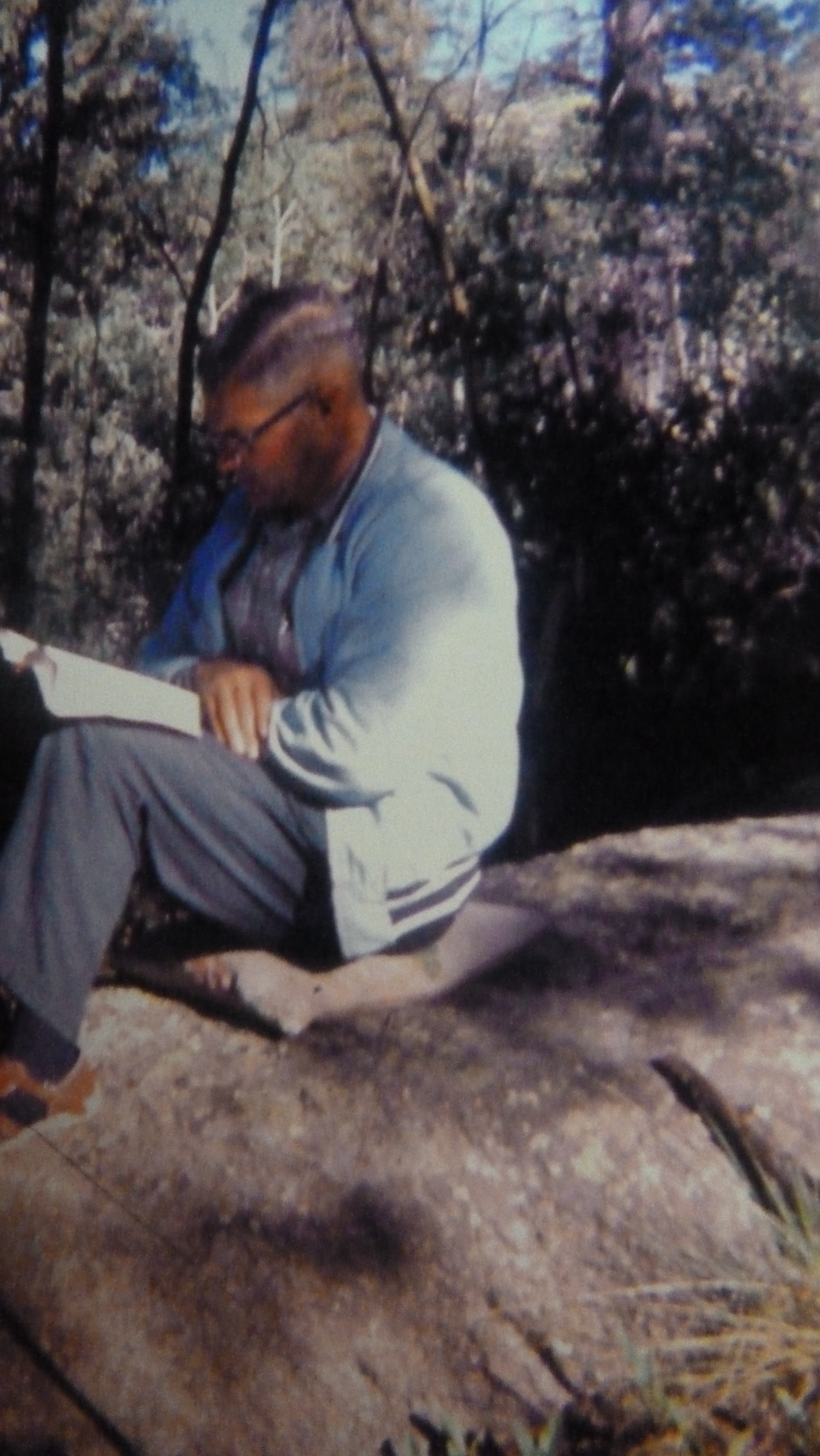 Dad enjoying his morning Bible reading (note pillow) at Rocky Mountain Mennonite Camp.