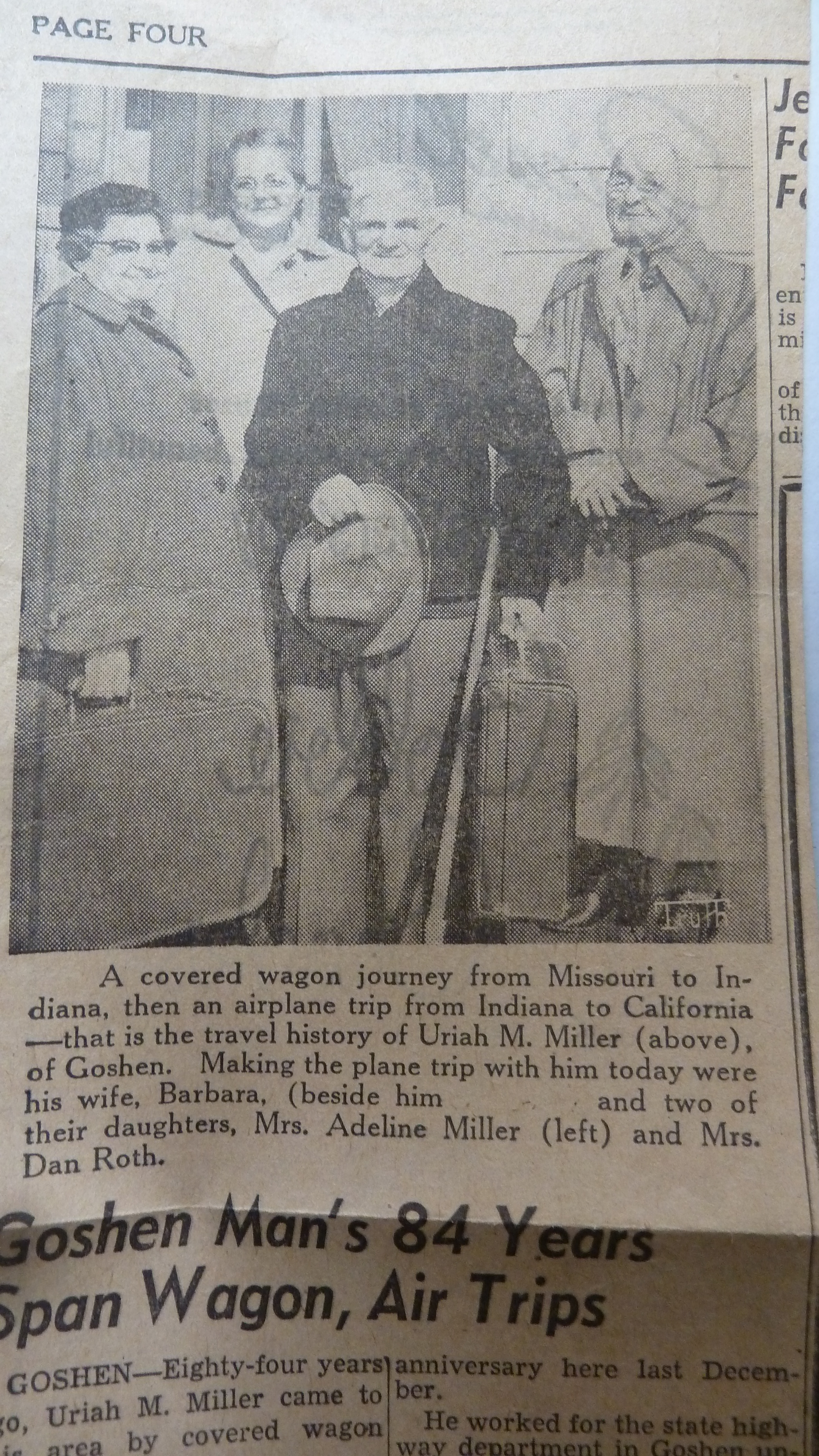Grandpa’s life story spans from the covered wagon to the jet age—he personally used both modes of transportation, a story carried by our local paper at the time. He and grandma, ages 84 and 81, flew to California to visit a granddaughter and family.