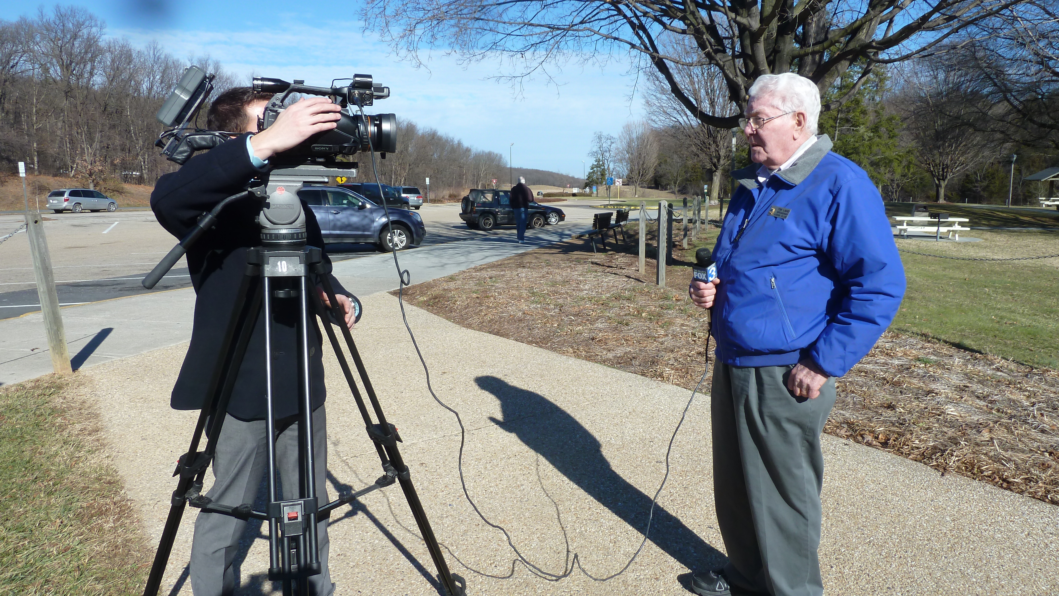 This year we had no more started our two hour shift when up popped not one but TWO media outlets trolling for a New Year’s Day “good news” story. We had not called or notified them. First a reporter and photographer from the Daily News Record in Harrisonburg showed up and posted this feel good story with only a few mistakes such as I DID NOT say I did it most every year; my husband usually does. (You can’t read the whole story online unless you are a subscriber but you can see their photos and captions in the link above.) Minutes later a reporter from local channel TV 3 hit our same spot and did an interview with a former “District Governor” from our club, Tim Land (above), but I’m not sure it ever made anyone’s telecast. I found this brief blurb on their website, here. Slow news day: any day free donuts make the paper, it is a good thing!