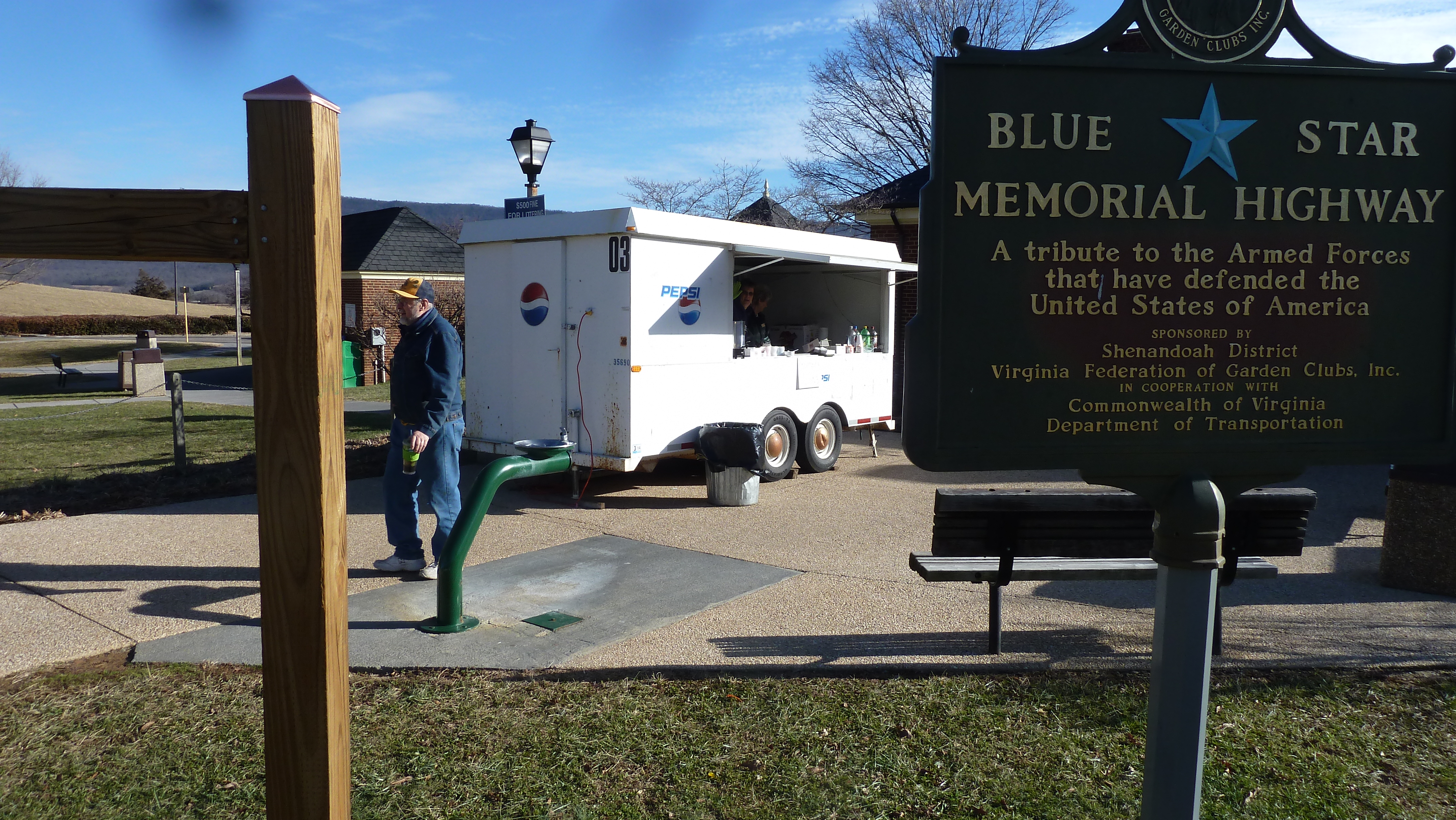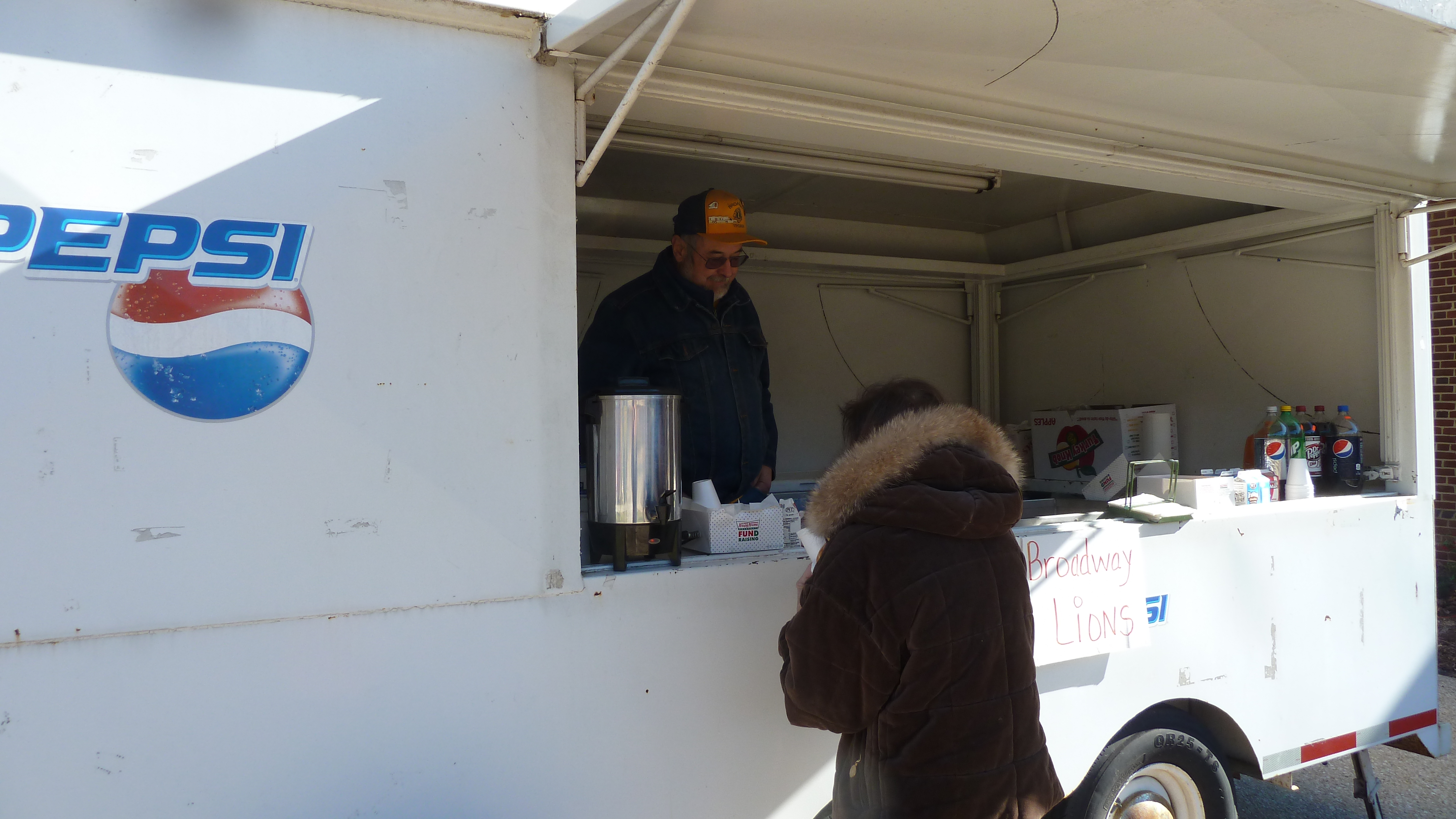 “I feel bad taking this without paying for it,” said a young trucker accepting a cup of coffee and donut from the Lions Club “New Year’s Day Safety Rest Stop” along Interstate 81 near New Market, Va.