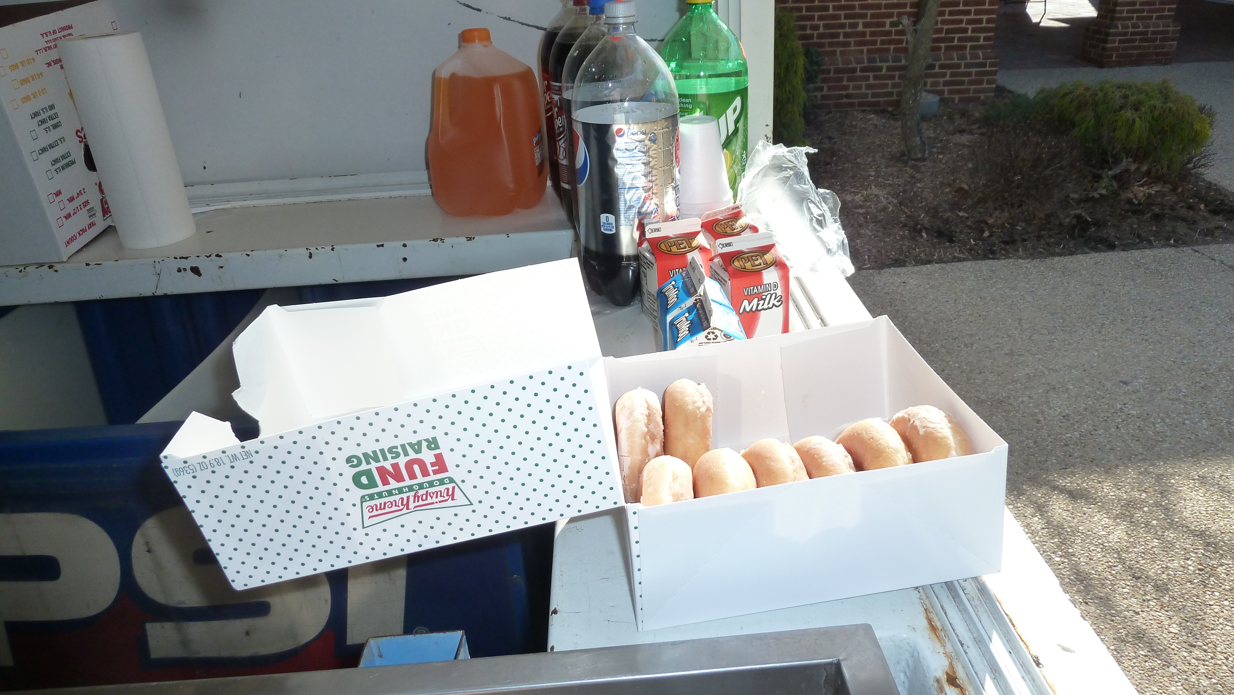 Most are fine with the free goods after learning why we’re doing it and happily enjoy the coffee, milk, soft drinks or donuts. Quite a few though skip the freebie: after all, they’ve just STOPPED for a potty break, right, and don’t want to stop again an hour down the road. I get that! Plus it is New Year’s Day, day of resolution not to indulge in things like random donuts.