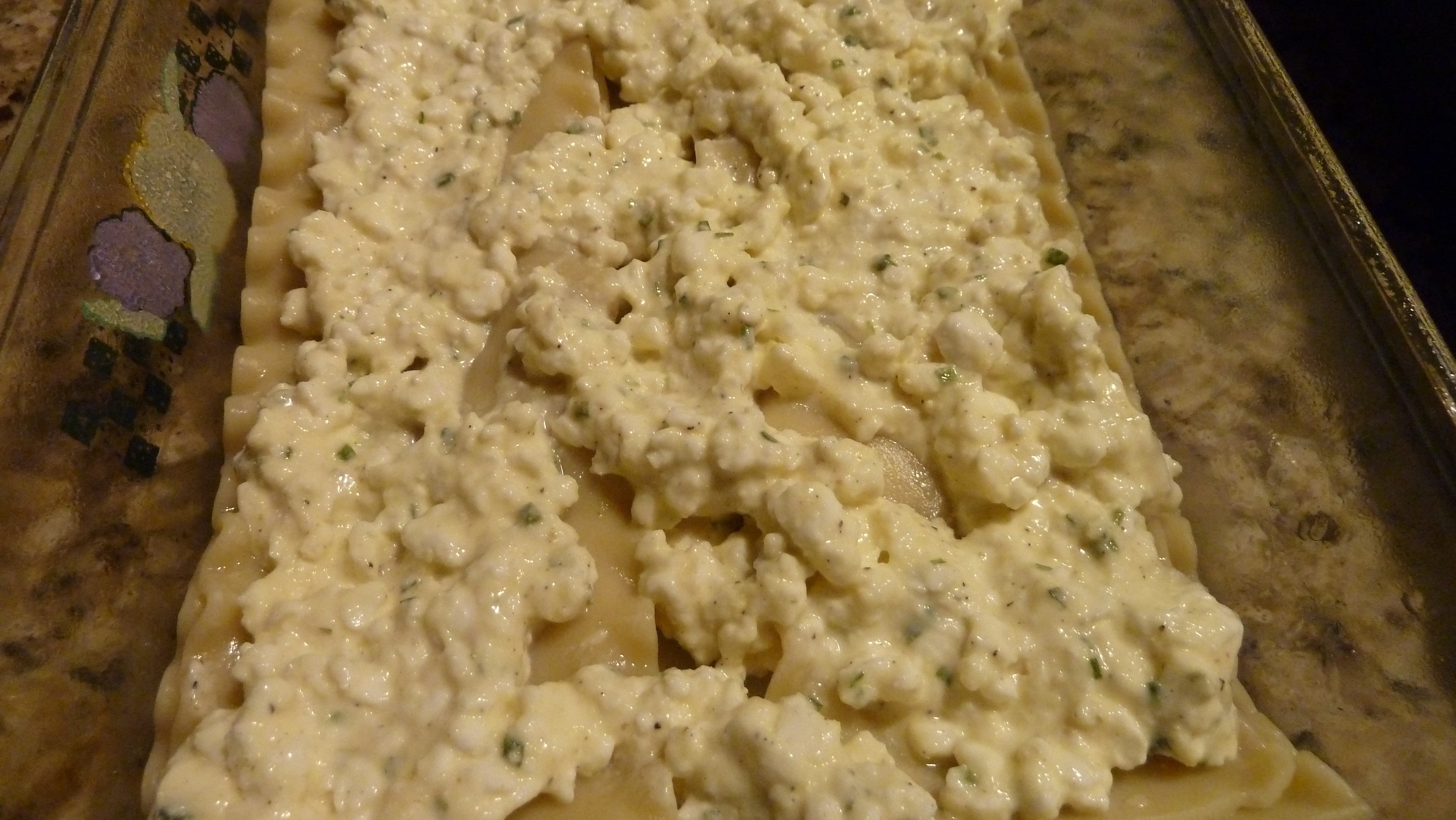 (Instead of ricotta: cottage cheese, egg, parmesan, salt, pepper, and parsley–