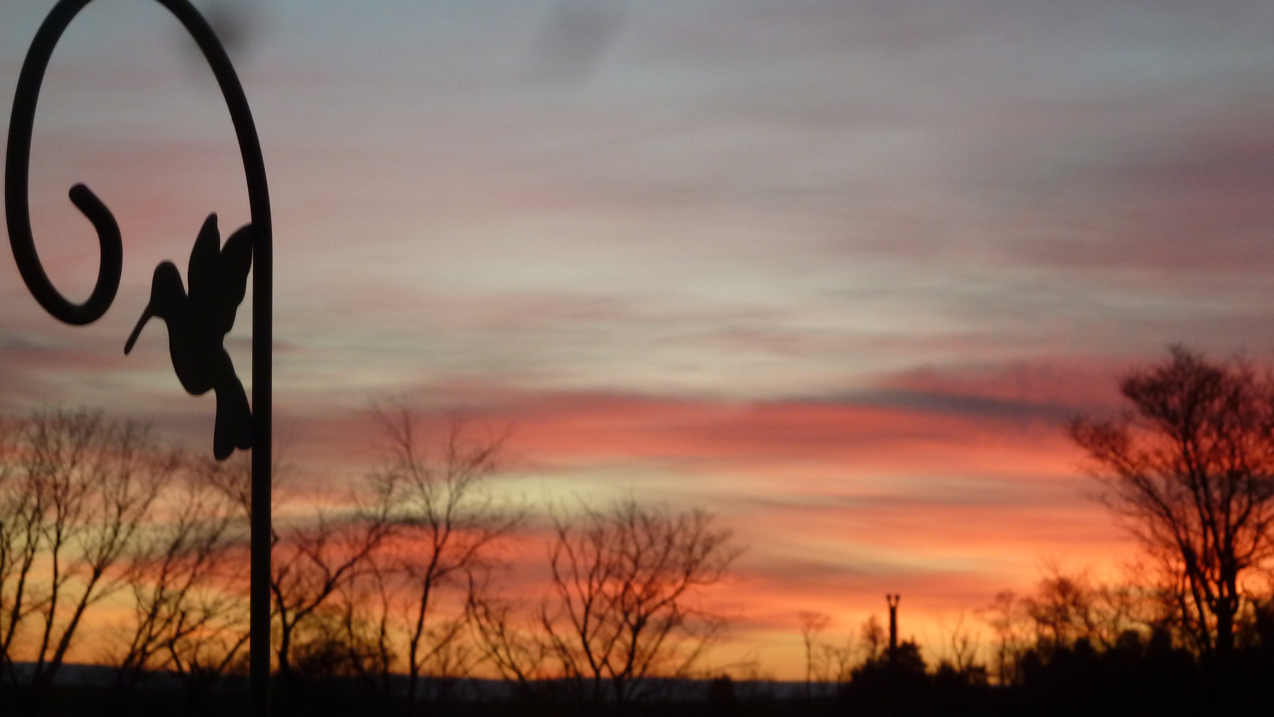 Then for most of my life in Virginia, 30 years, my husband and I and daughters lived in a small ranch house where our kitchen window faced north. I enjoyed my view of the woods and homes behind us, but to really get a peek at the sun, I had to wait for a sunset. Sunsets were visible from my west-facing kitchen window. But no sunrises.