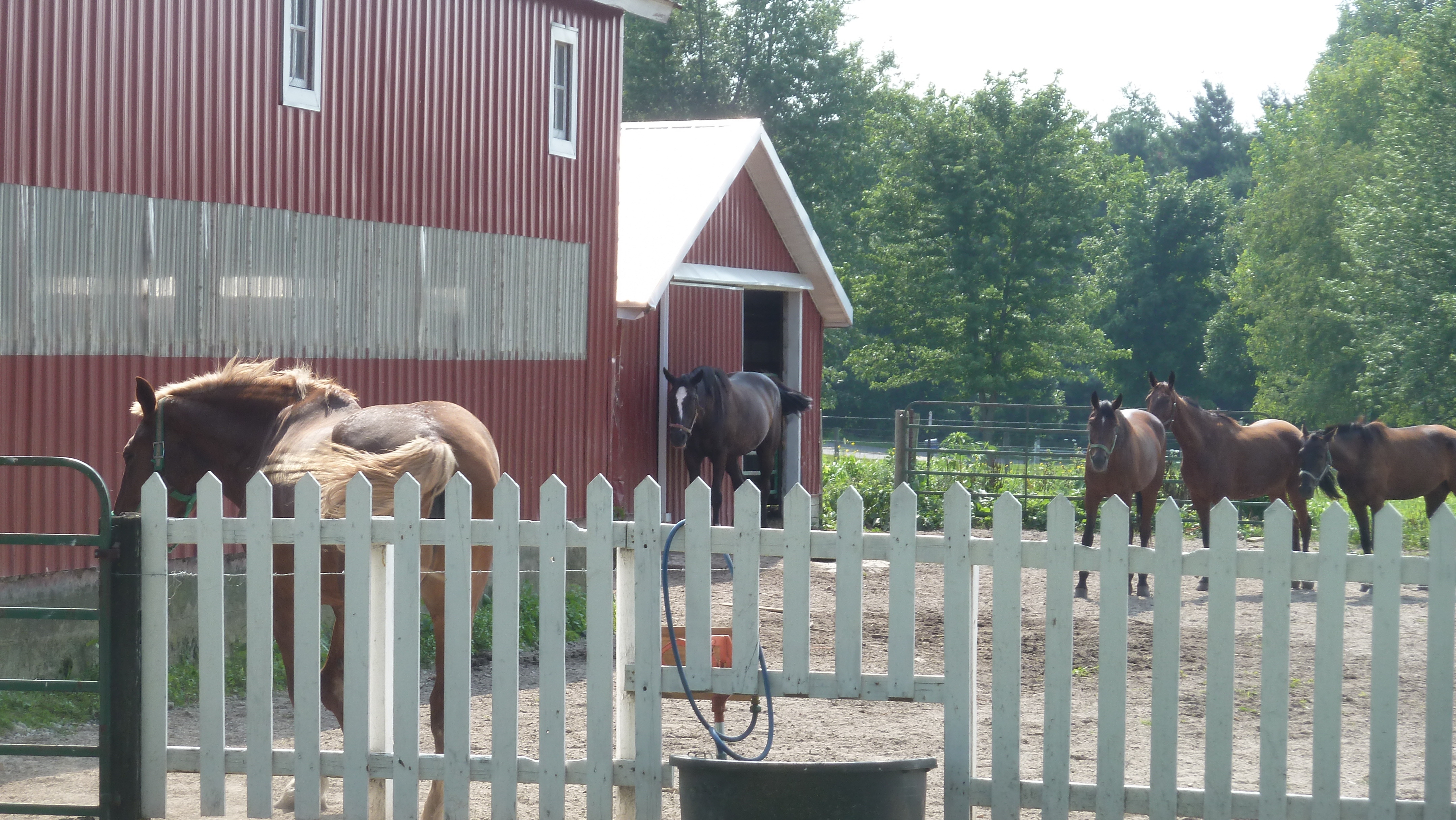 Now we encroach on this Amish family on special occasions, asking if we can visit: when my father died in 2006 and after the graveside service, the farm was where we wanted to go. More recently, on the day before my mother’s 90th birthday (covered here), the farm was where my brother and his family especially wanted to go, a sort of pilgrimage for his son, wife and their two little girls who had never been there. The rest of us were only too happy to oblige. Indeed the farm and land is a holy place for all of us where roots were put down deep and wide.P1060016Our old barn, now with Amish work horses plus those for pulling buggies.