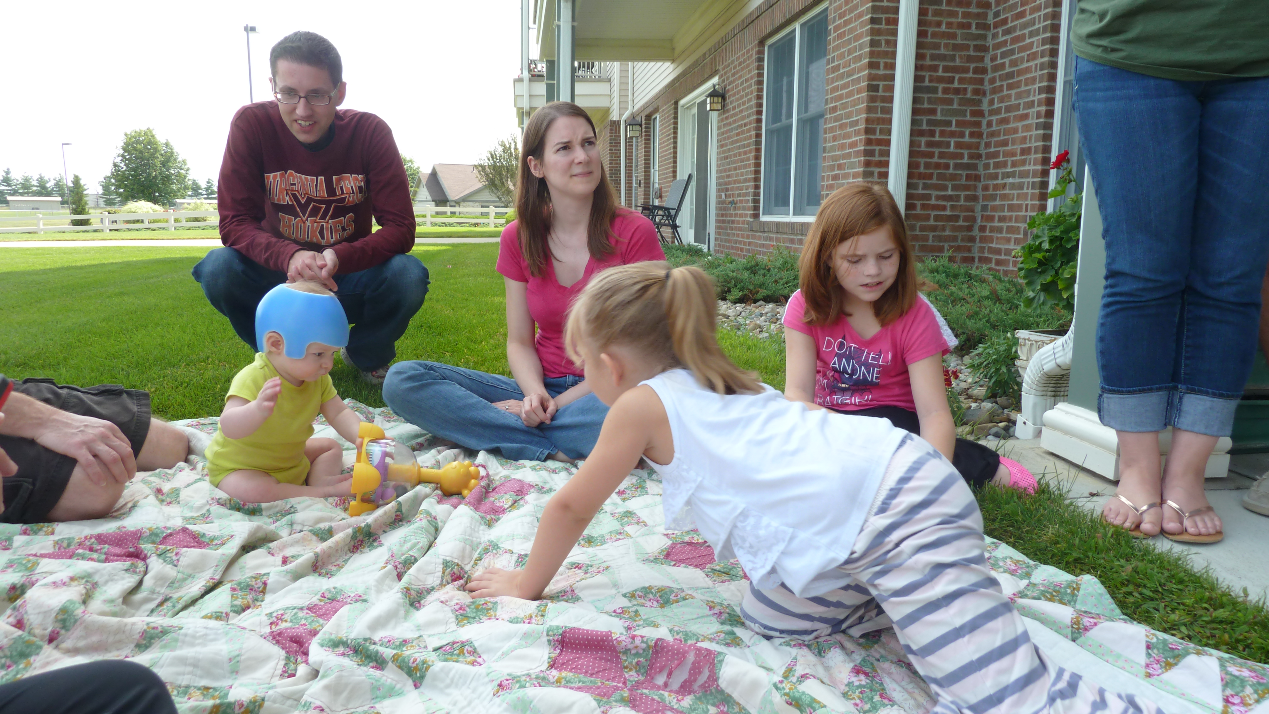 First cousins getting together after not seeing each other since Mother’s Day. Great Aunt Pert in back.