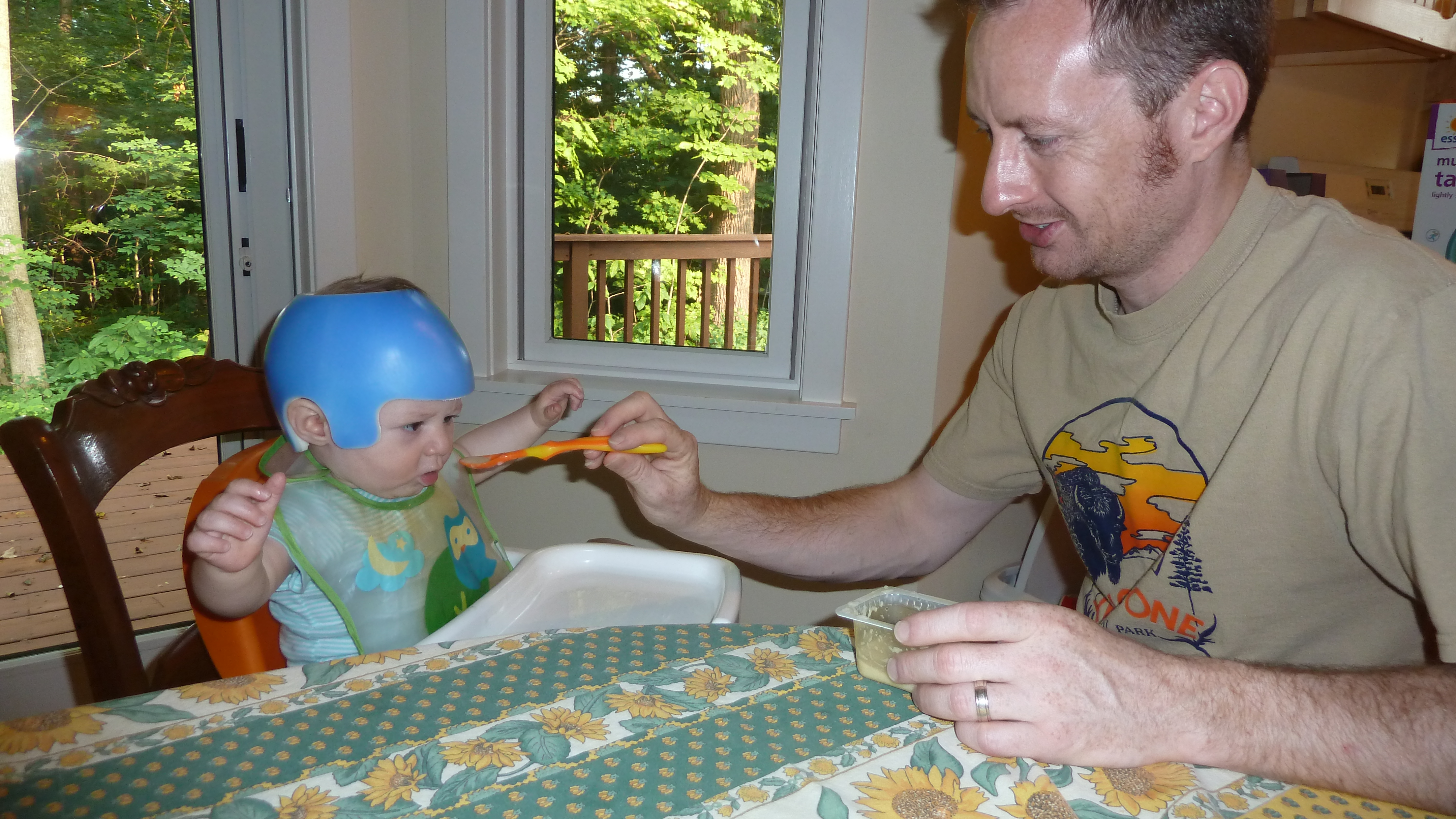 Son-in-law Jon feeding his son Sam at our cabin.