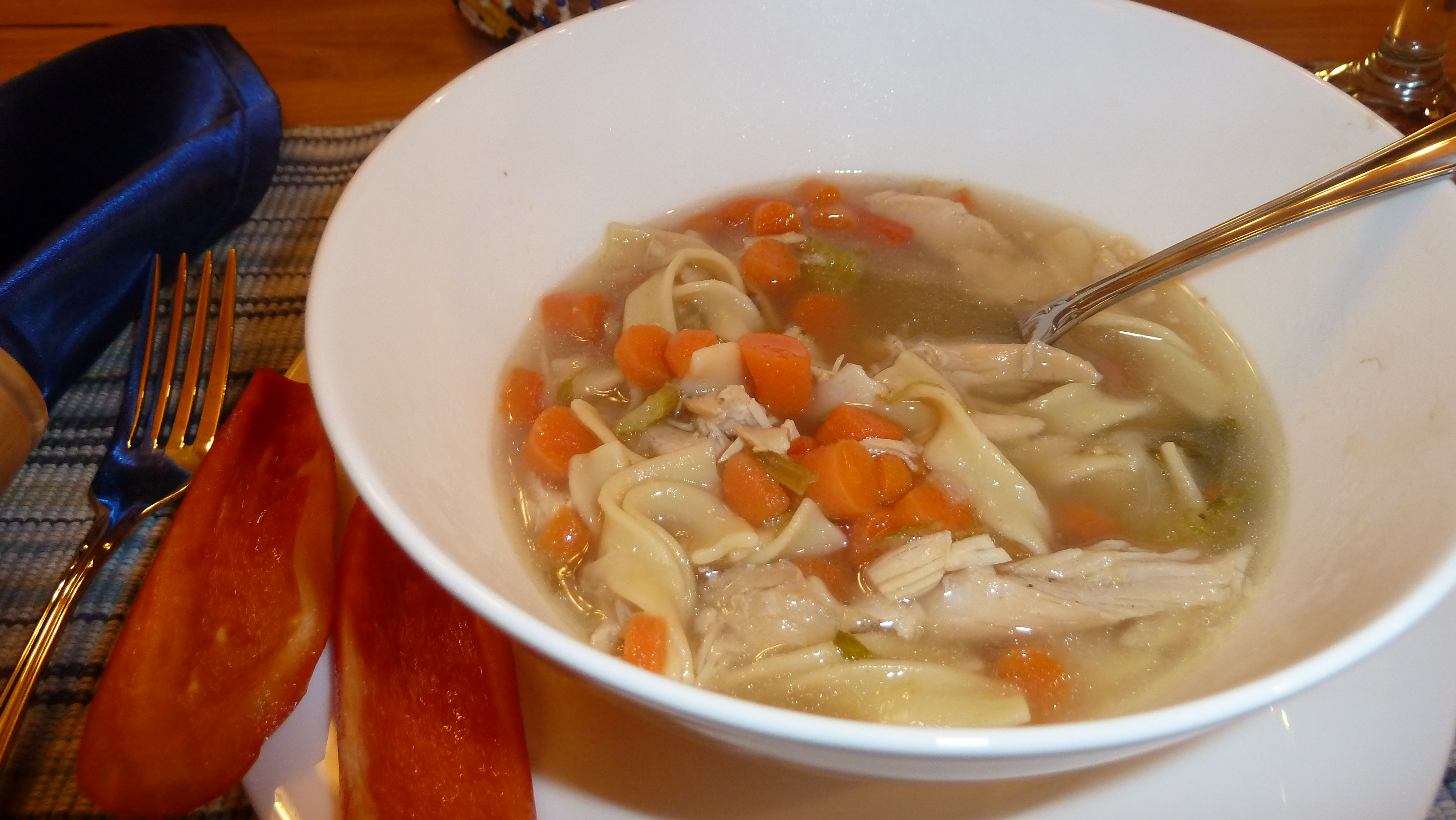 What a great idea to strain the broth through a sieve. I messed up big time one year when there were bits of bone/cartilage that made it into the soup. Not good! I should note that the red peppers were of the sweet (not hot) variety and they mostly added some nice color, not that different in the way of taste. But why add them if you don’t want them! Thanks for your comment.