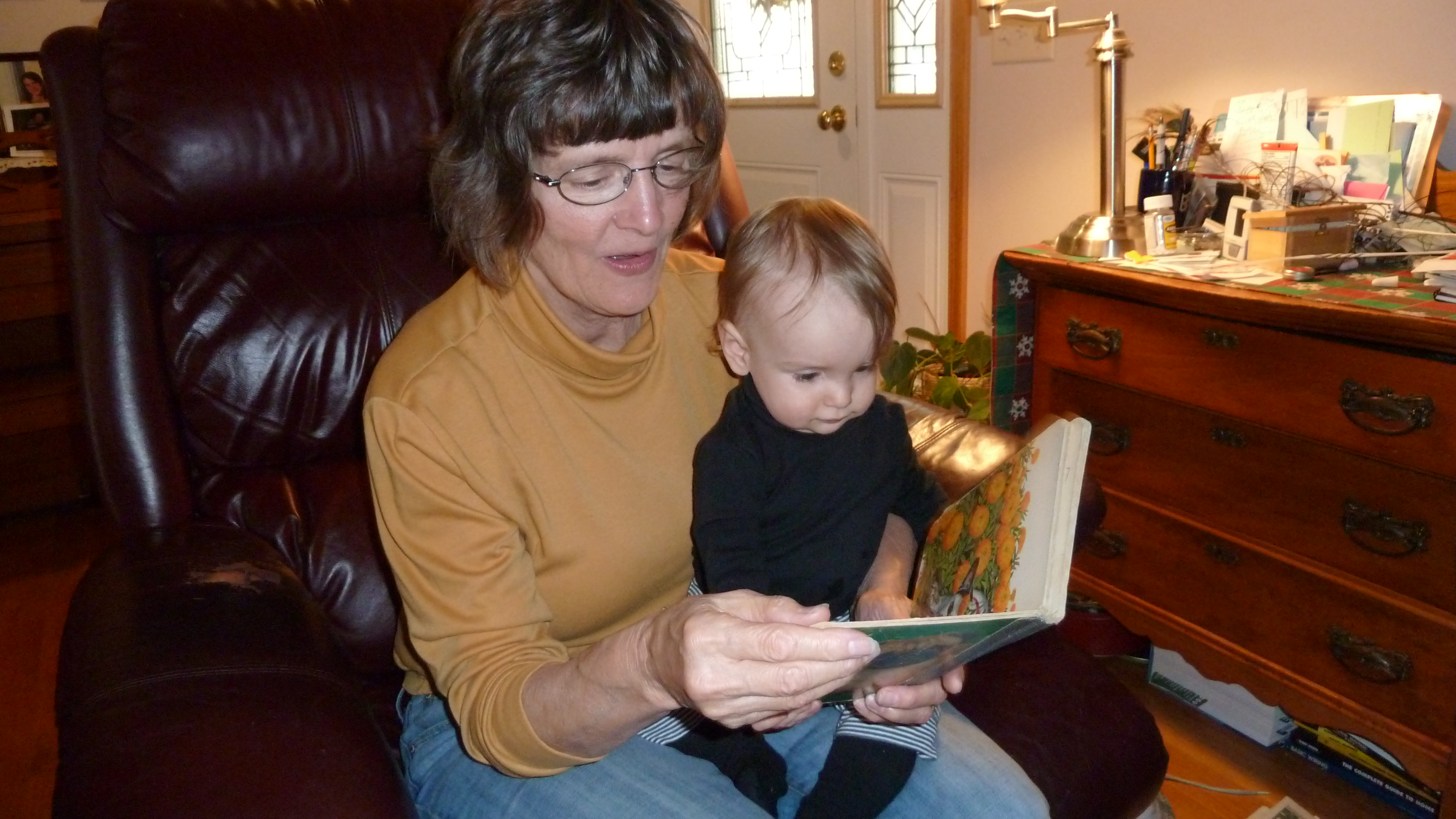 We sit at the end of my long dining room table, just the boy and me (doesn’t being one year old qualify you to no longer be called a baby?). I don’t stuff him into his high chair, just hold him on my lap, and break off a piece of the soft cookie and hand it to him. He puts it in his mouth. I wonder what goes through his little-boy head. There is no turning away, no batting my hand back. He chews it slowly. He has been eating all sorts of good-for-you food starting soon after six months: bananas, broccoli, potatoes, even avocado, squash and zucchini, and then graduating to meats in things like chili, spaghetti, sloppy-joes, chicken (he has six teeth). I break off another piece; he uses his newly acquired pincher skill to take the next chunk with his index finger and thumb, and put it in his mouth himself. We sit there, grandma and boy, his parents scurrying with the tasks at hand so they can get on the road. He does not squirm, whine, or try to get down. It is magic. (I confess I was copying the “small boy” style of stories I have come to enjoy from Sharon Clymer Landis over at “Color My Soul” blog. I’ll try not to copy her too much.)