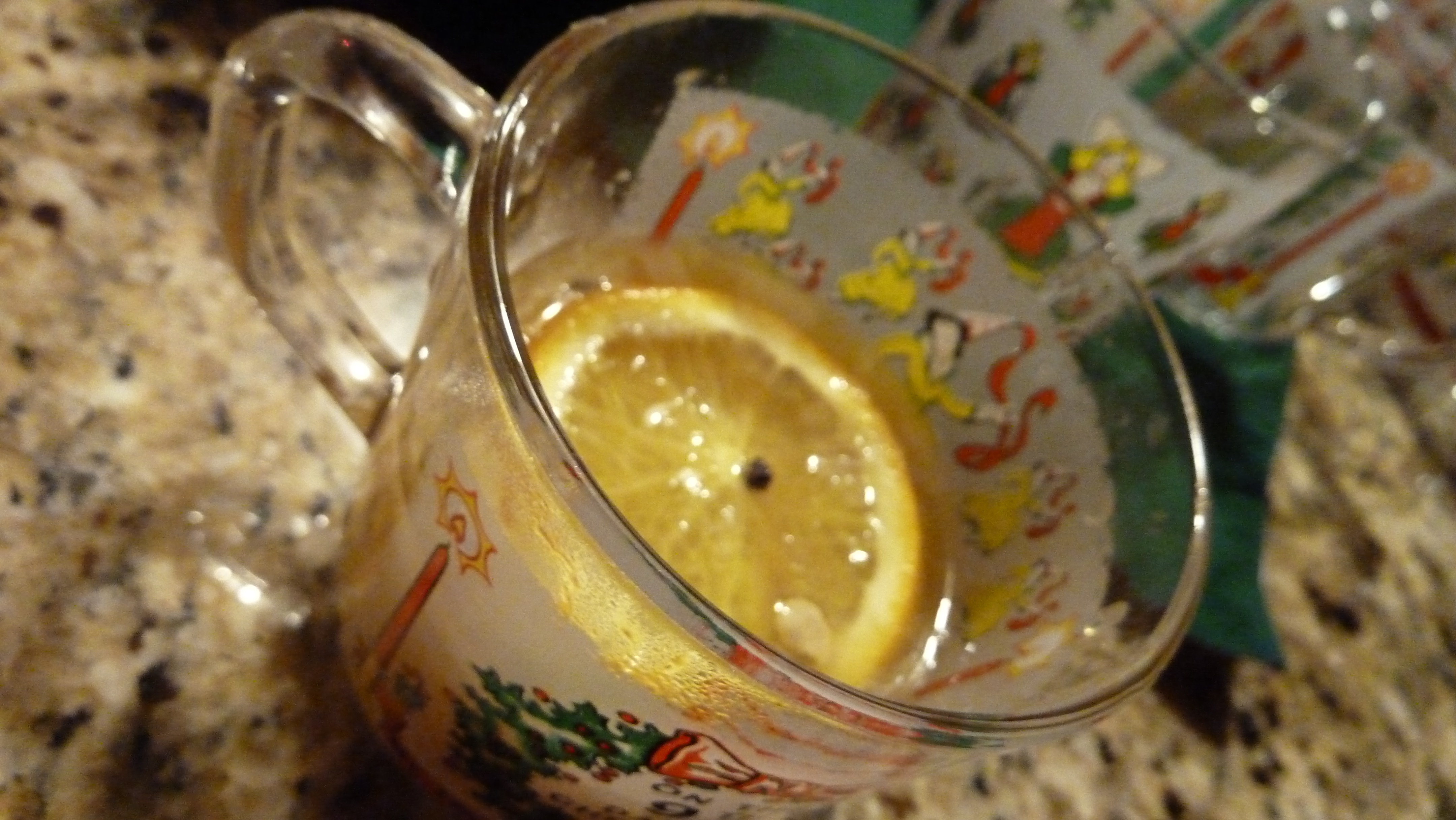 You are right: Taking down decorations, especially the Christmas tree, is not nearly as much fun as putting one up. Your post today helps sweep away the gloom. And the recipe? I like any warm drink with apple cider, oranges juice, and lemon slices. The tea cup beside my computer is begging to be filled with hot tea now. My sister has a kumquat tree, and so I slice a kumquat in half for the taste.