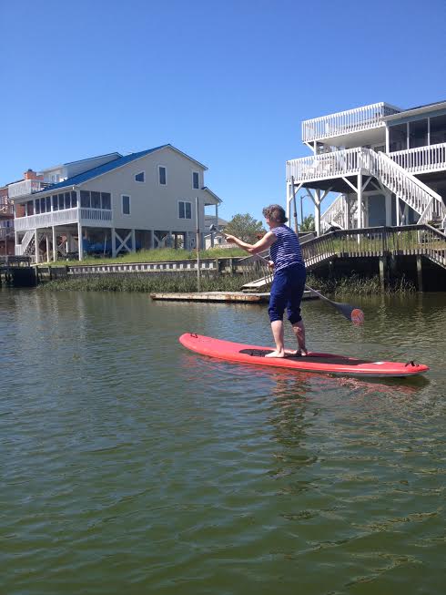 The first thing I knew there was my nephew, Scott, walking on water, kind of. Scott was standing up on a paddleboard which looks like a surfboard but is flat, and paddling like he steered a gondola everyday. This was on a calm canal behind the beach house we were using. But then, Scott’s a strong and agile guy just in his late 30s.