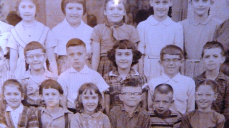 3rdGradeClassMiddlebury3rd grade class at Middlebury Elementary. Bertha, lower right, first row, rode my bus and we sometimes sat together. Ten of those pictured were Mennonite, Conservative, or Amish. I’m middle of “tall” row.