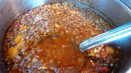 Lentils and a chaw of hearty Spanish bread. Yum.