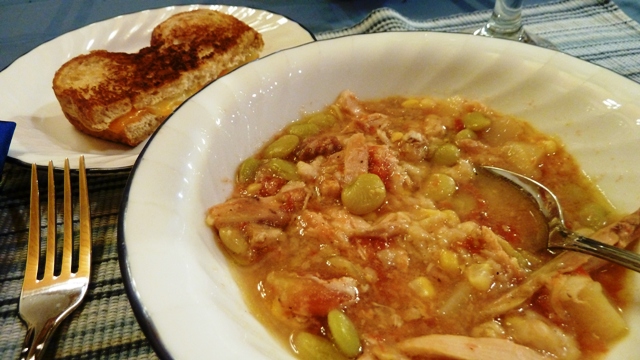 I’m reposting my recipe for Brunswick Stew published by Amish Wisdom yesterday, for my own blog followers who may not have seen it there, and just to have it in my recipe archives here. (For those who saw it on Amish Wisdom, you can scoot on to other things.) I have a few more cooking tips and tidbits to share here. If you didn’t see it there and would like a chance to win a copy of Whatever Happened to Dinner in their drawing, you can head over there (offer good until January 14 2016).