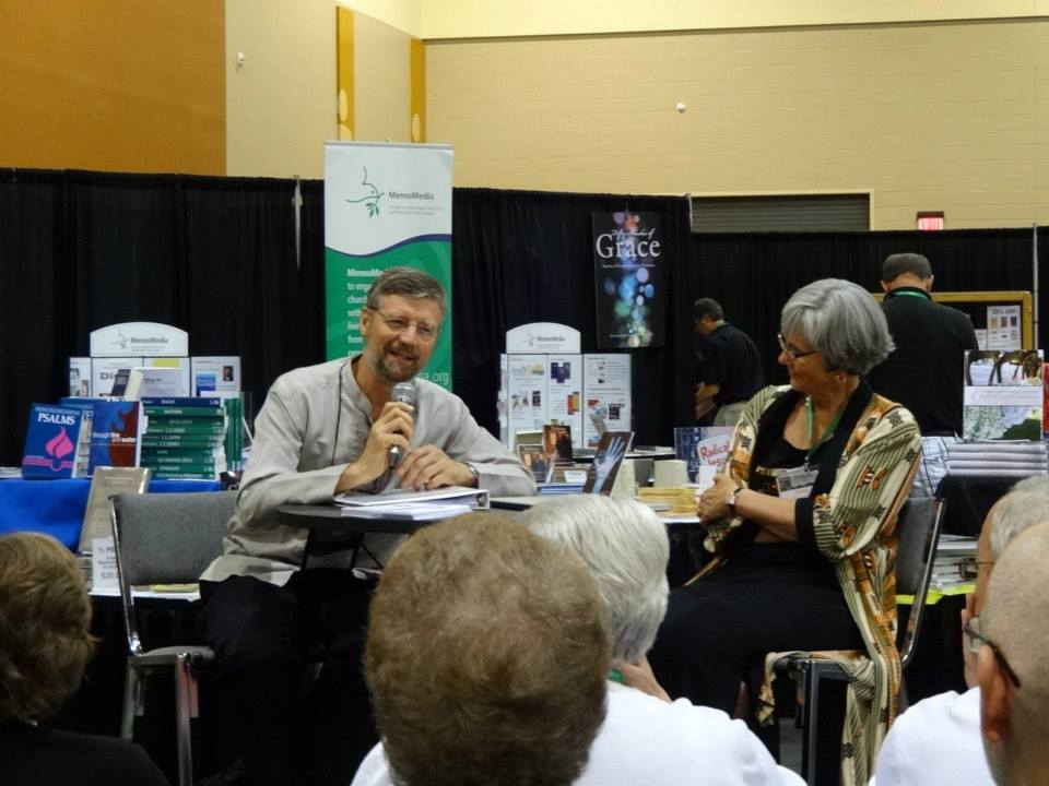 Ervin Stutzman, left, and Shirley Showalter, right, talk about their books at the 2013 Phoenix Mennonite Church USA convention.