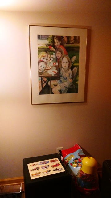 Pobai’s painting “Children’s Choir Picnic” will watch over my grandchildren’s toy corner in the living room of our home.