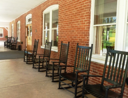 I love that the painting alludes to a favorite resting place at Massanetta: the rocking chairs on the front porch entrance way. (below)