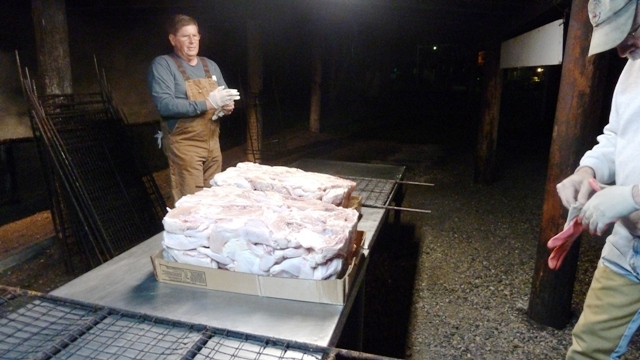 The groups of mostly men come together to grill 500 or 750 or 900-1000 halves of barbecue chicken for the easiest—and hardest—fundraiser ever: almost a guaranteed success with the leg-thigh-wing-breast half going for $3.50 or $4 each. You can buy cheaper whole rotisserie chicken at Costco, but it won’t be made by a community.