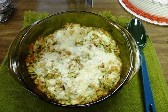 There was only one spoonful left of zucchini casserole so I couldn’t shoot artful photos of the dish, but at any potluck when there is only one spoonful left, you know people enjoyed it. And a number of folks commented on how good it was. Sweet music to a cook’s ears.