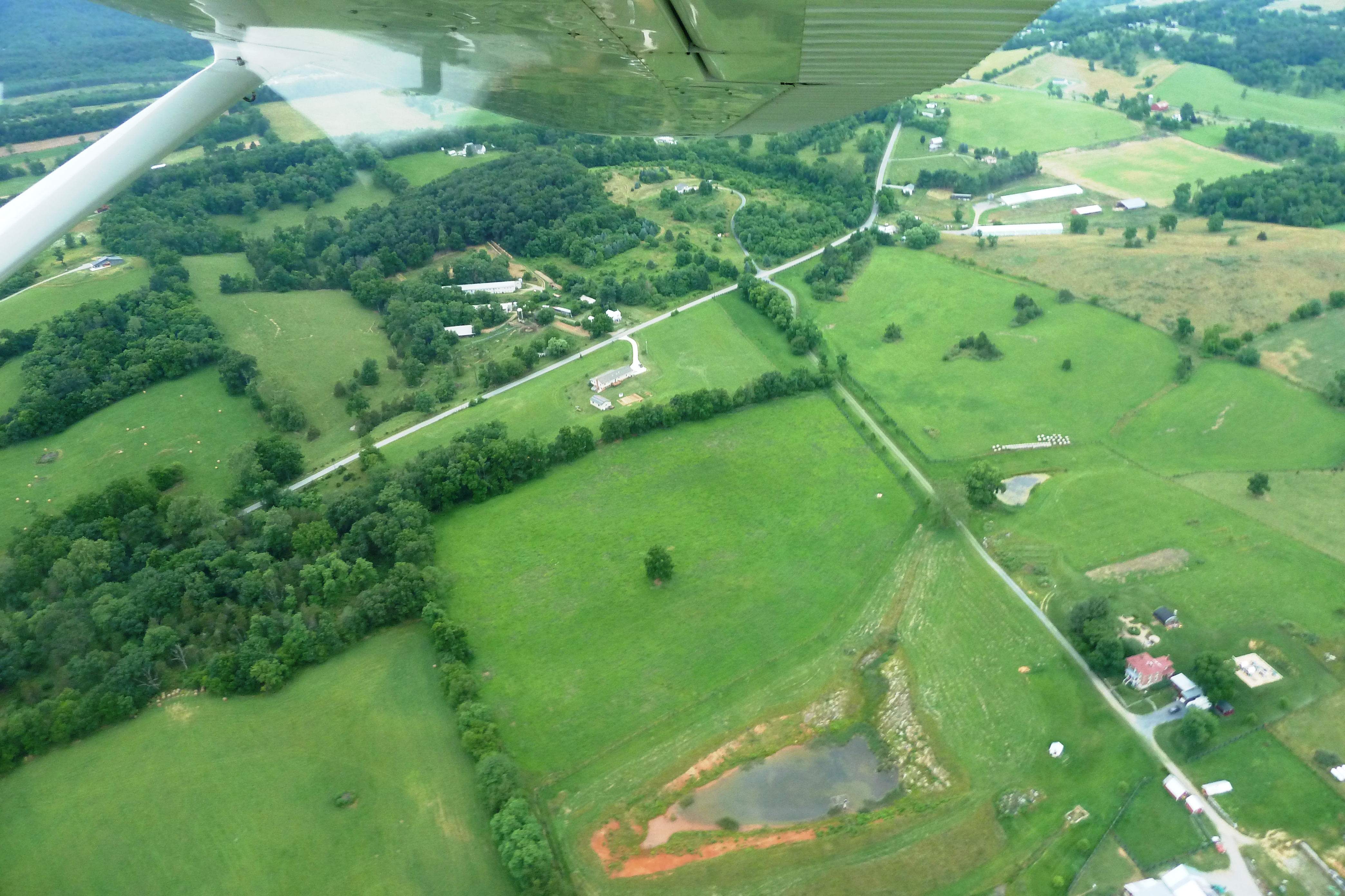 There was only one scene that marred our sweet flight and that was flashing red lights of a fire engine and rescue squad out in a nearby field, with what looked like the wing of a small airplane peeking out from under a tree. Could it be a plane wreck? The pilot thought so, which was sobering to all of us, and his wife had messages waiting for him on his cell as soon as we landed. She had heard news of a crash that happened just minutes before we took off. A father and son went down and the father pilot was airlifted to University of Virginia Medical Center, and thankfully survived although his recovery may take awhile. His son was treated and released at the local hospital. Their plane had not cleared trees at the end of a farm runway. I’m kind of glad I didn’t steal a shot of someone else’s misery.