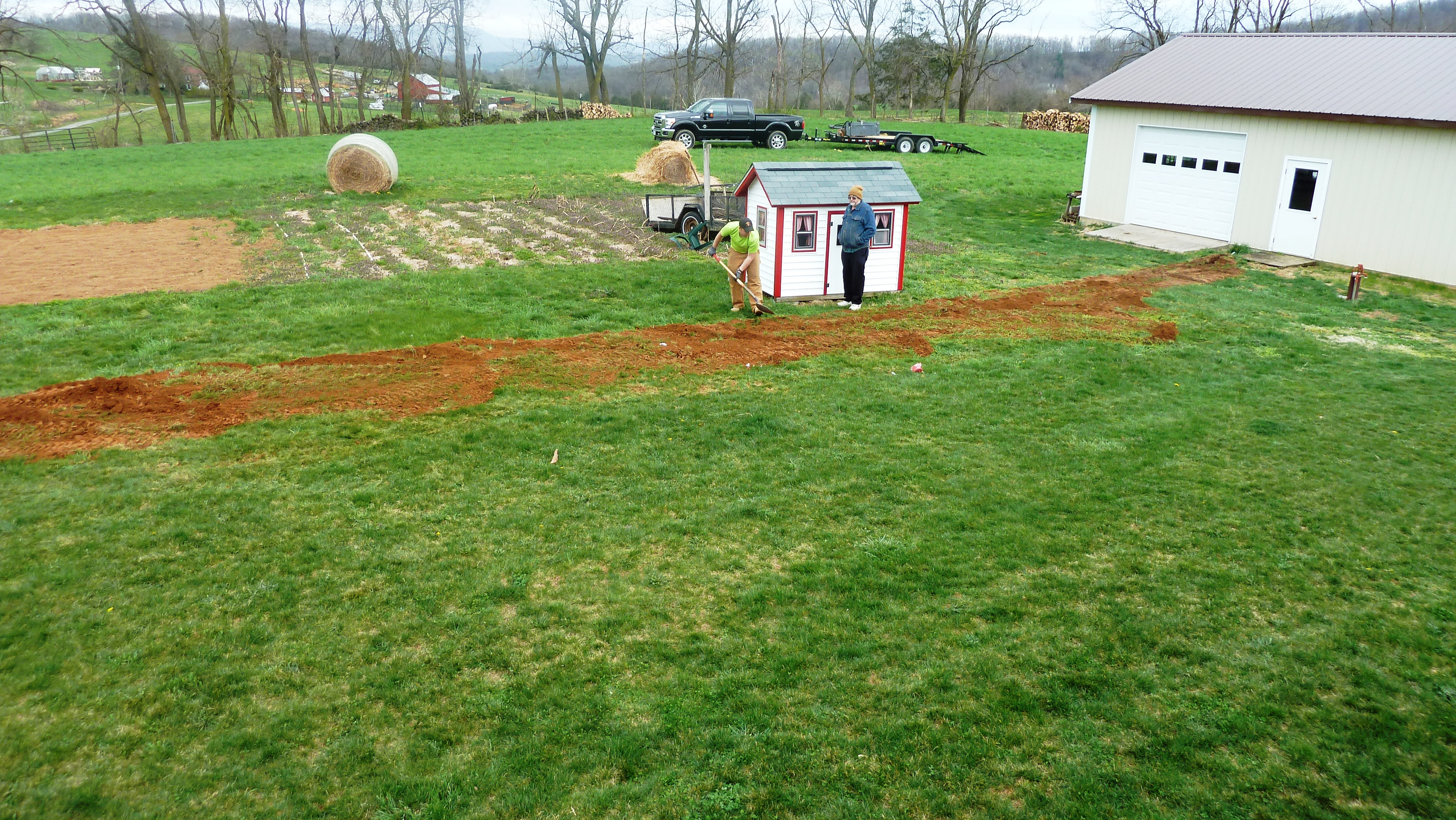 The bonus for us was being able to have electricity in our building, (including them digging a trench for the conduit to the building) which we’d been hoping to do for five years. So we can plug things in out there! My husband plans to finish wiring the rest of the building for his shop.