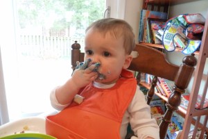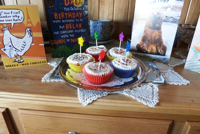 She ordered a small birthday cake from a bakery decorated as a cute little bright blue drum for the musical theme. The one-year-old enjoyed it very much and so did the rest of us, with the gluten-free boy making do with his cake mix cupcakes.