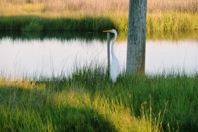 Island life. We were lucky to have been there during temperatures of mid to high 80s, rather than the higher 90s to 95 of a very hot and humid July, according to the inn keeper. The grounds there must be a continual upkeep challenge: boardwalk paths cover a marshy yard which needed mowing. The warped and raised boards posed a real stumbling hazard for those of us over 50—where an awkward fall can quickly twist a knee or back into years of pain or treatment.
