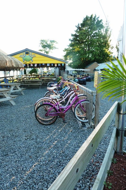 We ate at Lorraine’s with excellent food and to-die-for island cornbread; not being seafood people, we left the island without sampling the crab cakes everyone said were a “must eat.” When we cycled past Lorraine’s restaurant in the afternoon I saw a woman taking the garbage out the backend and guessing, I hollered with a smile, “Are you Lorraine?” Bingo. “Yes,” she smiled back. That smile won her two more dinner guests—since it was the only restaurant open on a Monday evening, other than one other bed and breakfast, which in addition to breakfast, also served dinner to its guests. The next day we had a decent lunch at a 50s themed shop, Spanky’s Ice Cream and also bought cones at Four Brothers, where you can also rent bikes or golf carts.