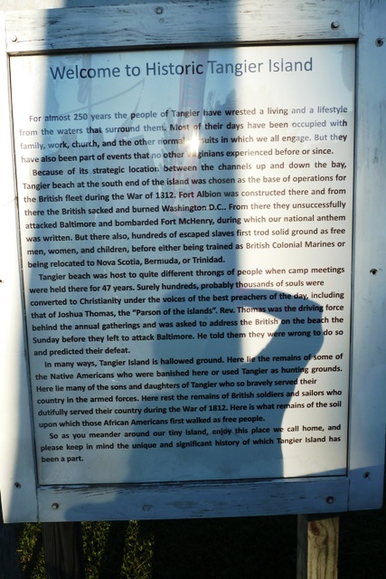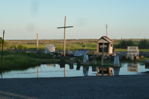 In the War of 1812, the British established Fort Albion at the beach end of the island and from there sailed up the Chesapeake Bay to sack and burn Washington D.C. Later they also unsuccessfully attacked Fort Henry up near Baltimore (which is of course where the national anthem “Star Spangled Banner” got its birth). Fort Albion was also where hundreds of escaped slaves first experienced freedom before being inducted and trained in the British Army, or relocated to Bermuda and Trinidad. Methodist camp meetings were also held on the island and its religious roots still run deep. We observed many crosses, religious signs on boats or piers, and souvenir mementos pointing to a solid Christian faith.