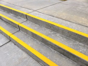Good example of well marked steps at the newly expanded MCC Gift and Thrift Store in Harrisonburg, Va. Most employees, volunteers and many customers are in the above 60 age group and appreciate this great marking.