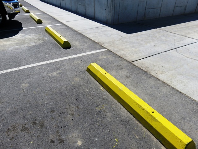 In outside space and parking lots, watch out for curbs that pop up from nowhere, drains, and unmarked balusters. I drove into a grocery store parking lot recently that had red curbs blazing everywhere and I thought, wow, can’t miss those and wondered if there had been a recent unfortunate event there.