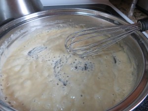 And P.S. The flour and butter mixing is basically making a roux. (Pronounced “roo.”) Adding milk or cream makes a bechamel sauce. Or gravy, if you prefer! I learned these schmancier terms when Dianne was rescuing a sausage gravy attempt for our Lions Club annual Pancake Days.