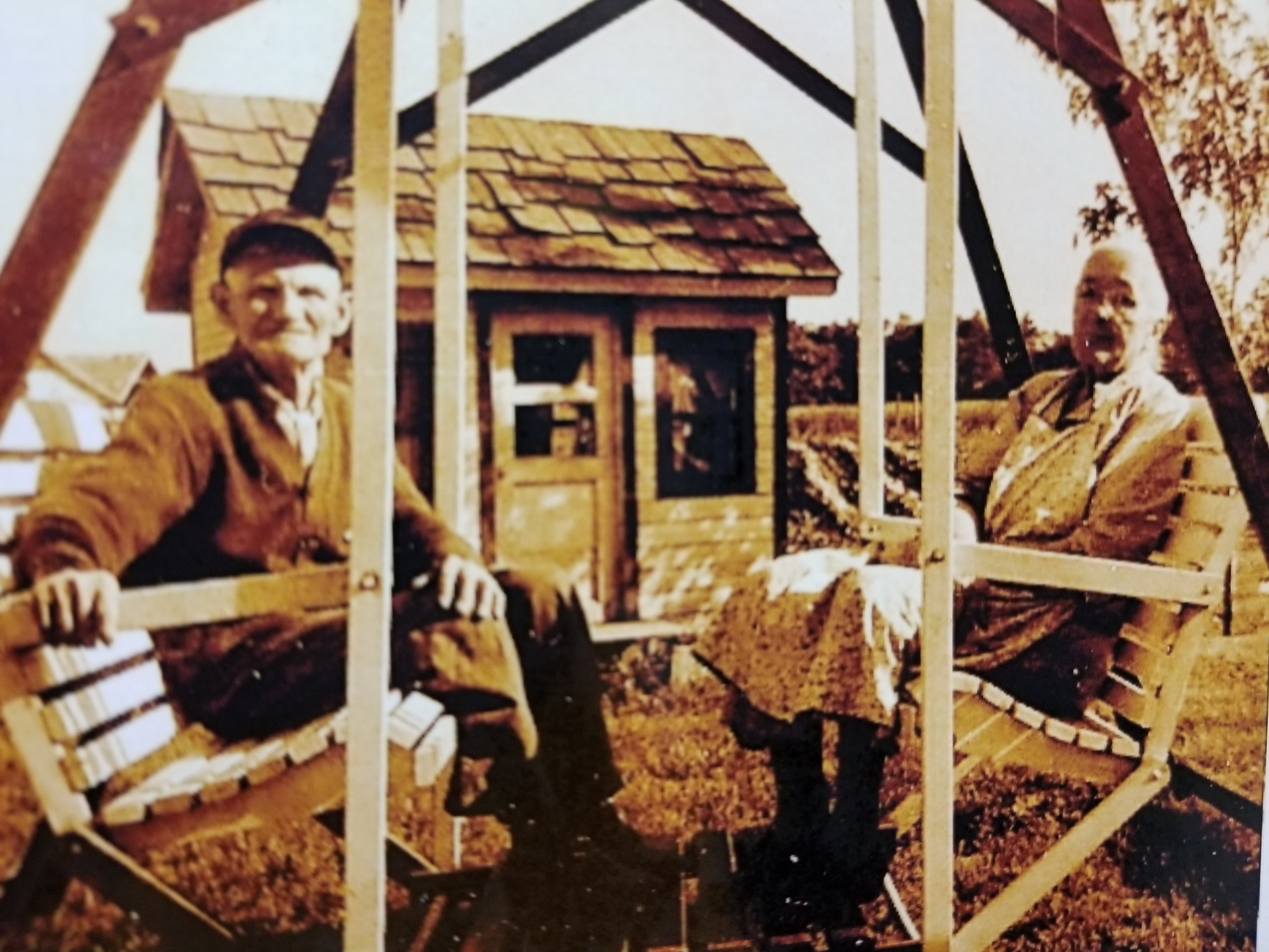 Grandpa Uriah Miller and Barbara Miller the way I remember them, in front of the playhouse Dad build for us. We have a replica of that playhouse at our home today for our grandsons to play in, also built by my Dad and renovated in 2013 by my husband and daughters.