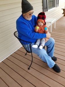 But by the time my daughter and husband are packing to leave around 1 p.m. on Sunday, hubby and I spend 15 or so minutes minding the grandchildren as they swing with us (go high Grandma!!) on the beloved porch swing, or race each other on the lengthy porch. Our little crawler cuddles safely on our laps. Henry launches slowly into a poetic description of the sights he is seeing as we swing on this windy day: “The trees are moving, the leaves are falling, the flowers are waving, the flag is blowing.” I compliment him that it sounds like a poem and he says, “What’s a poem?” Older brother and I try to explain it and I wish for a pencil to capture his words. Later I try to reconstruct it for his mamma and I think I’ve got more or less what he said—at least the spirit of his surprisingly poetic construction.