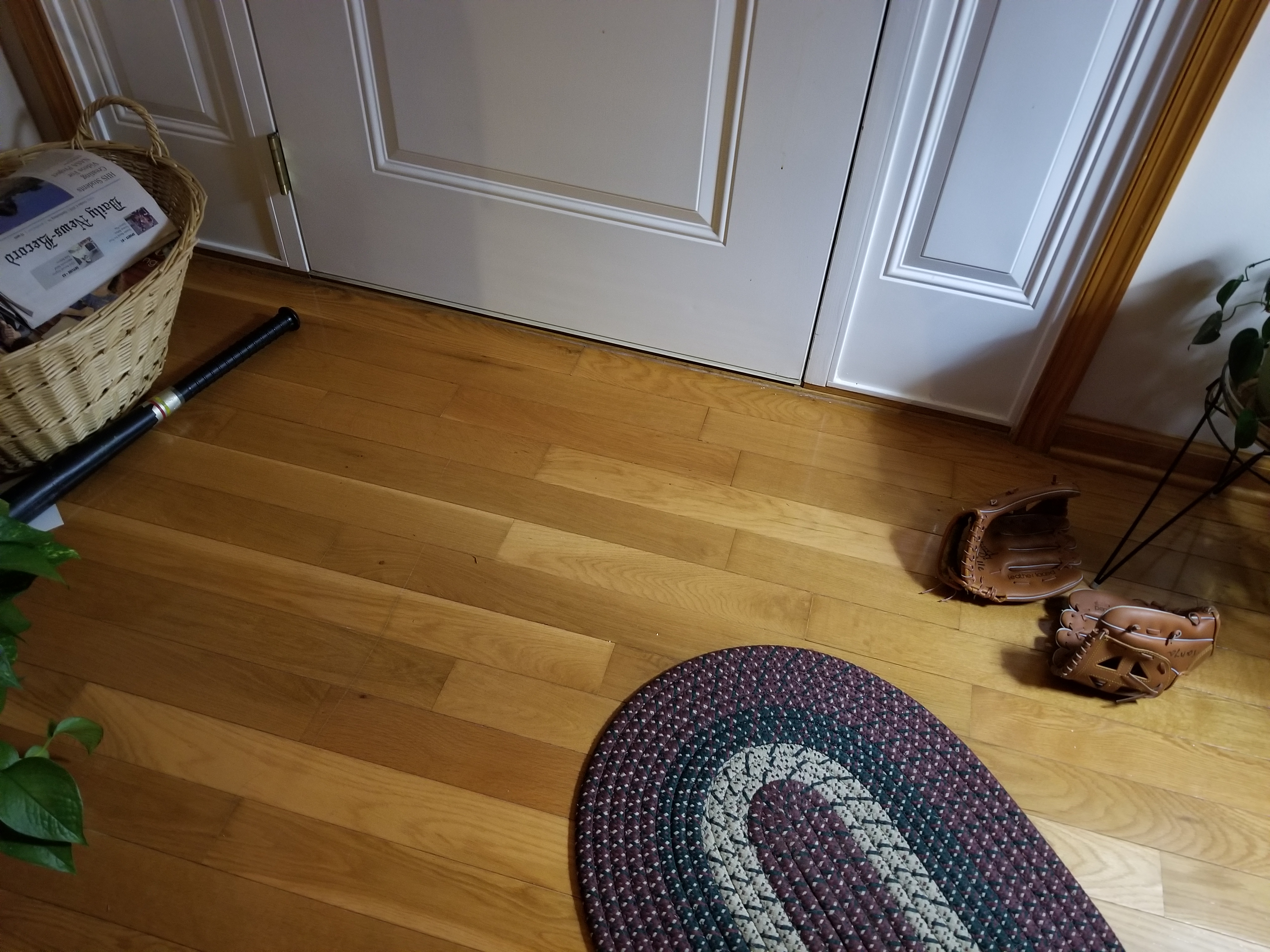 The mitts and plastic bat are right where some little boys left them.